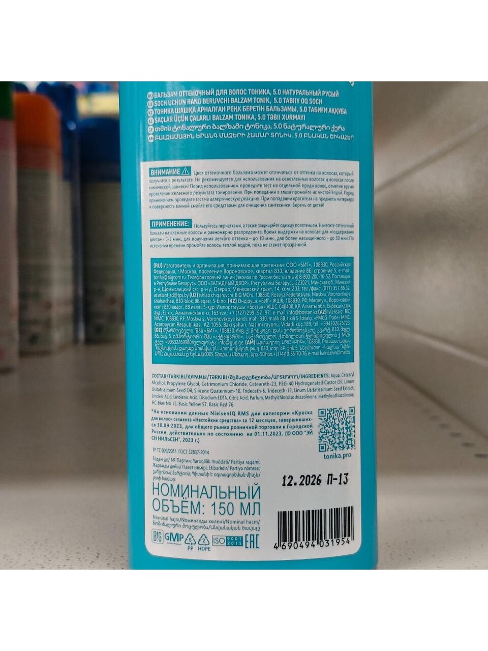 Насладитесь естественным и глубоким цветом волос с оттеночным бальзамом для волос Тоника, 5.0 Натуральный русый. Этот продукт идеально подходит для тех, кто стремится подчеркнуть природную красоту своих локонов, не прибегая к агрессивным химическим красителям. Объем 150 мл обеспечивает удобное и экономичное использование.
