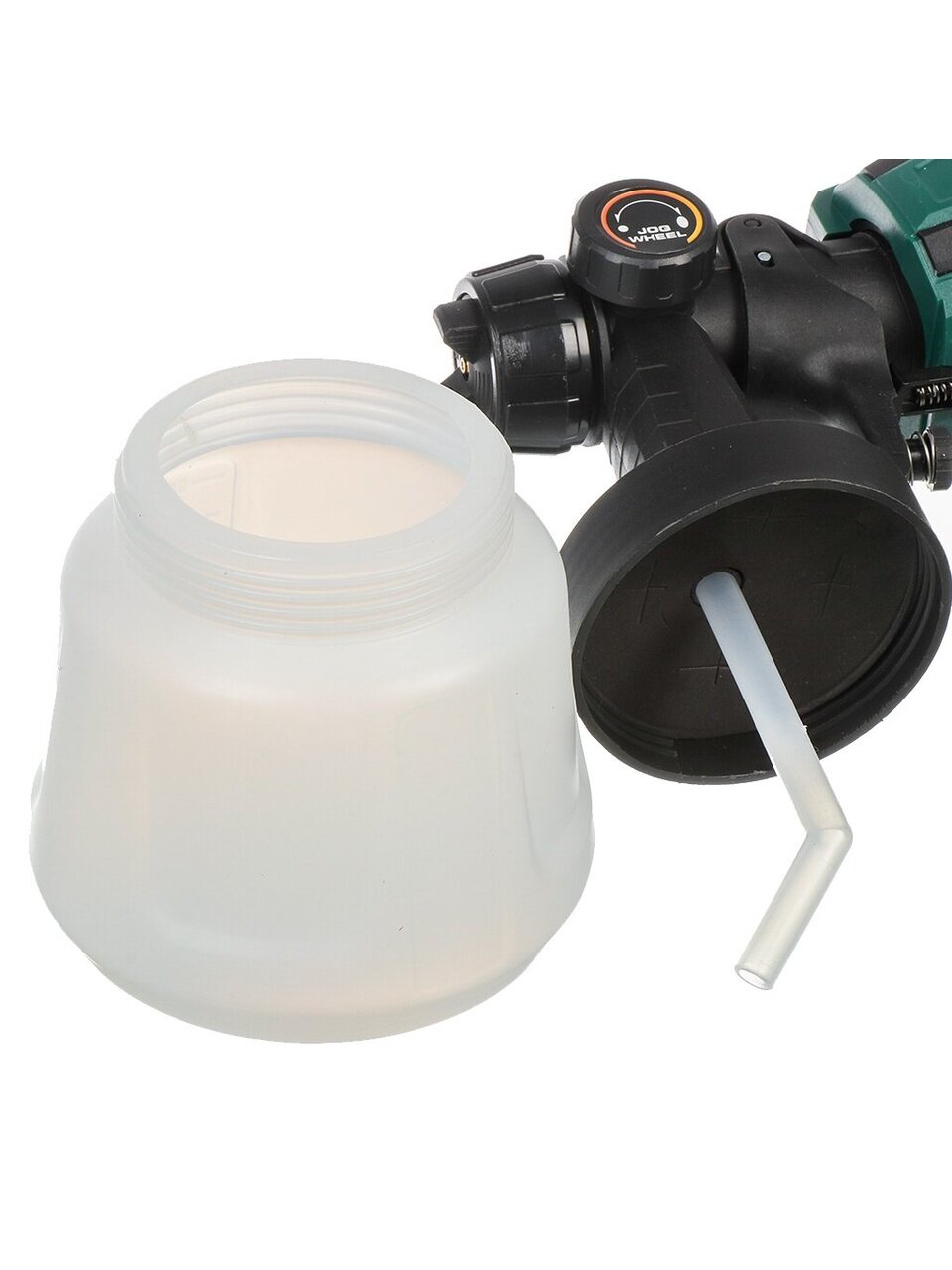 - Низкое расположение бачка обеспечивает оператору отличный обзор поверхности, которую нужно покрасить. Это помогает контролировать процесс нанесения краски и предотвращает перерасход материала.