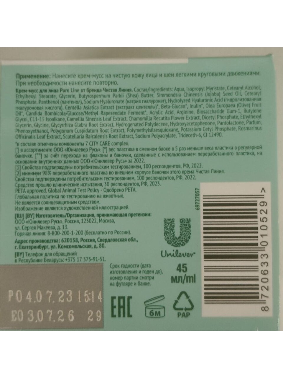 Вы можете приобрести «Крем-мусс для лица, Pure Line, для сухой и чувствительной кожи, 45 мл» и другие товары в нашем интернет-магазине в Нижнем Новгороде по низким ценам и с бесплатным самовывозом.