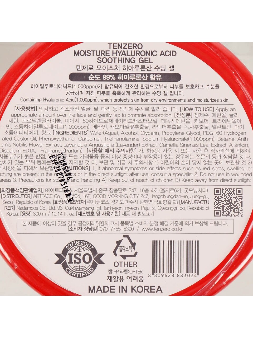 Гель-эссенция Tenzero Moisture Hyaluronic Acid Soothing 300 мл — интенсивное увлажнение лица и тела с гиалуроновой кислотой: быстрое восстановление, легкая текстура, экономичный объем.