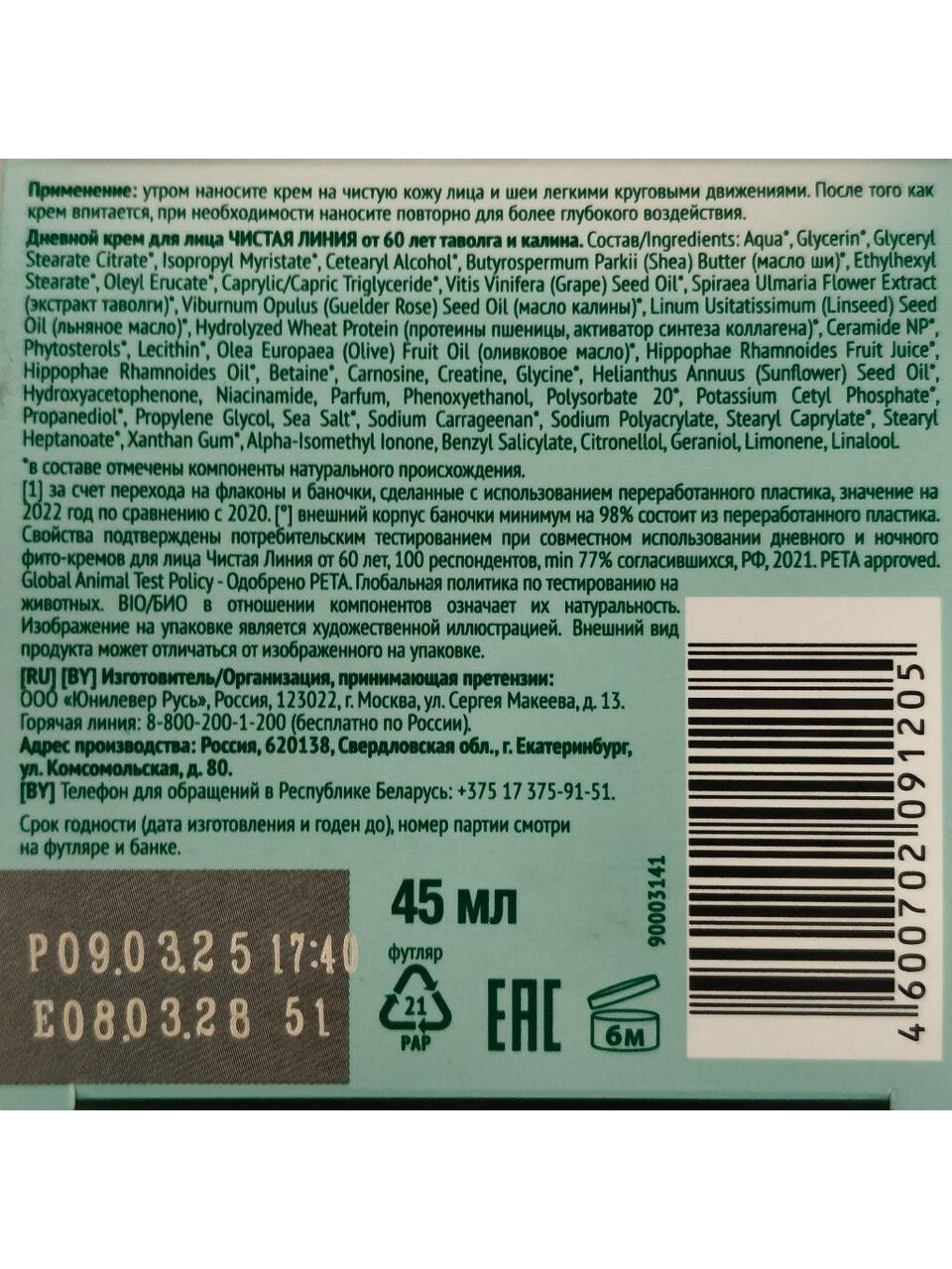 Вы можете приобрести «Крем для лица, Чистая линия, Таволга и калина, дневной, 60+, 45 мл» и другие товары в нашем интернет-магазине в Астрахани по низким ценам и с бесплатным самовывозом.
