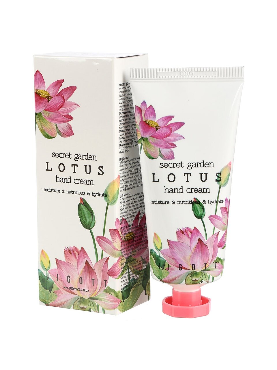 Крем для рук Jigott с экстрактом лотоса — интенсивное увлажнение и гладкость кожи без липкости. Идеально для ежедневной защиты рук в городе и на даче.
