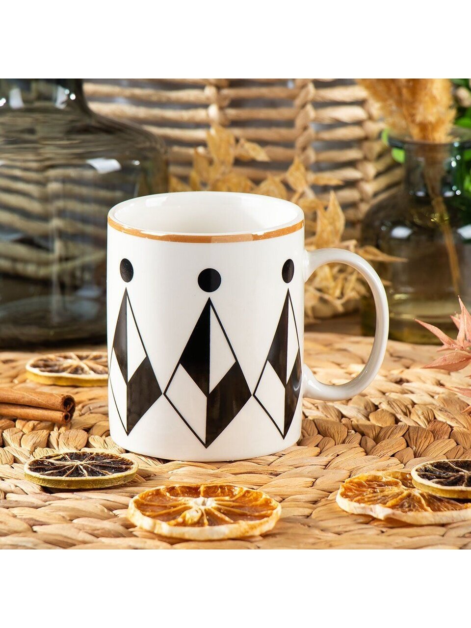 Кружка изготовлена из качественной керамики, обеспечивающей долговечность и надежность благодаря высокой прочности и устойчивости к механическим повреждениям.