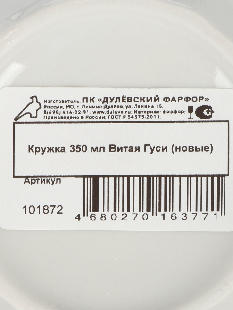 Вы можете приобрести «Кружка фарфор, 350 мл, Витая Гуси, Дулевский фарфор, 101872/099002» и другие товары в нашем интернет-магазине в Обнинске по низким ценам и с бесплатным самовывозом.