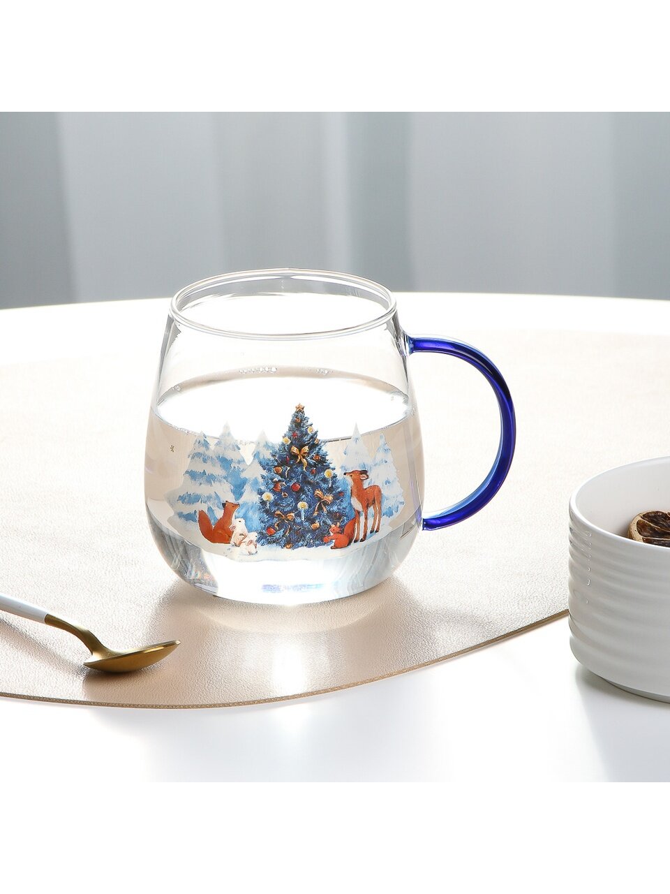 - Эксклюзивный зимний рисунок с ёлкой — создаёт новогоднее настроение и выделяет кружку среди стандартных вариантов.
