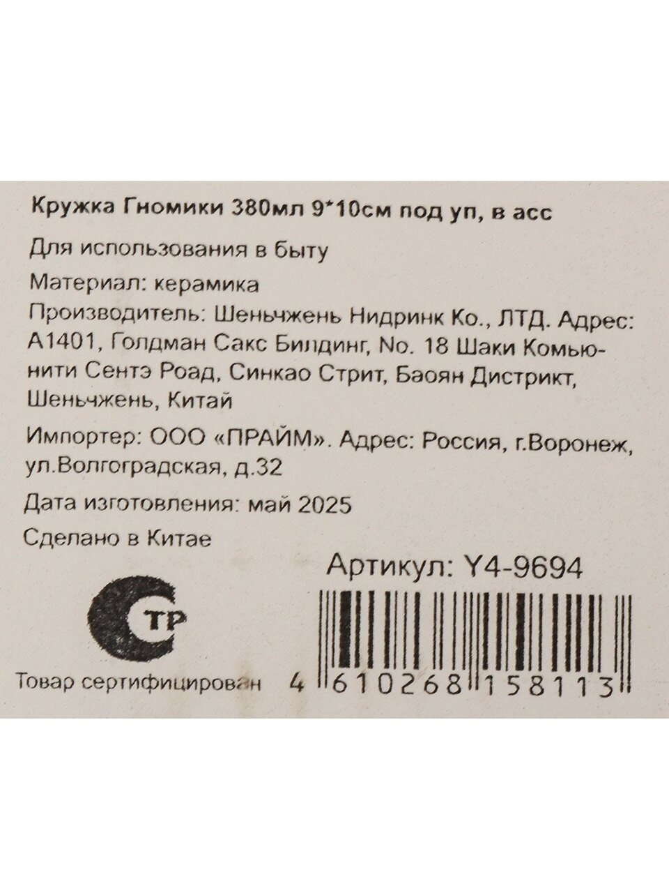 Вы можете приобрести «Кружка керамика, 380 мл, Гномики, 9х10 см, подарочная упаковка, Y4-9694» и другие товары в нашем интернет-магазине в Армавире по низким ценам и с бесплатным самовывозом.