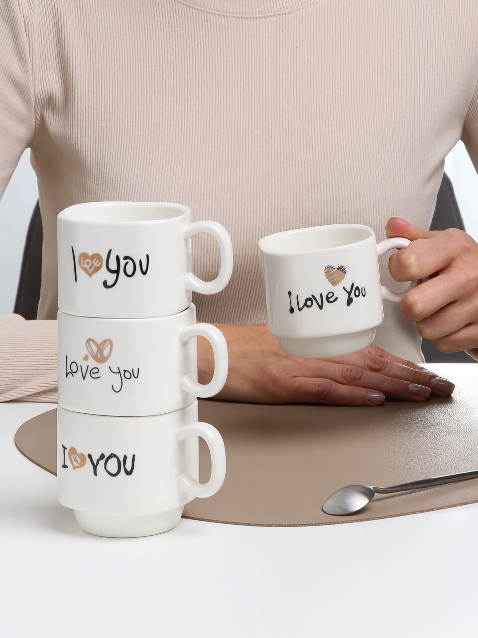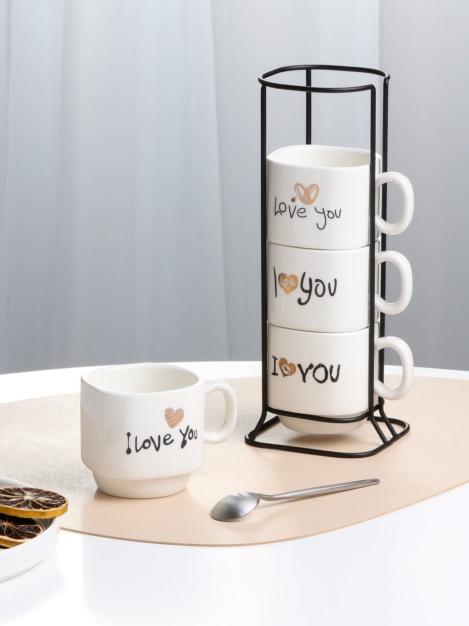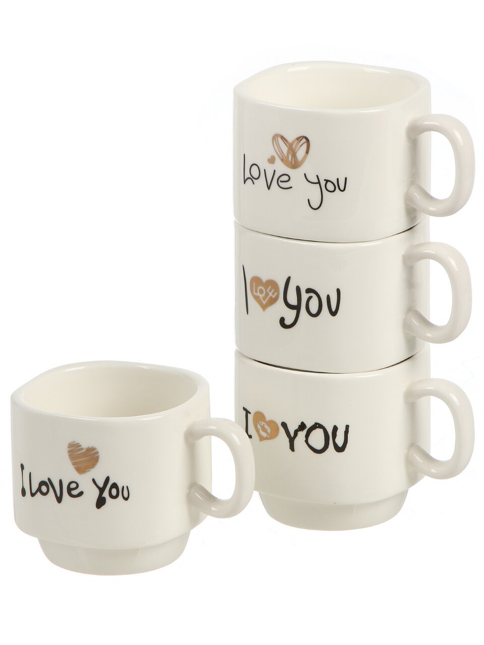 Набор кружек 4 шт на мет. Подставке, керамика, Лав, 200мл, Daniks, Y4-9698