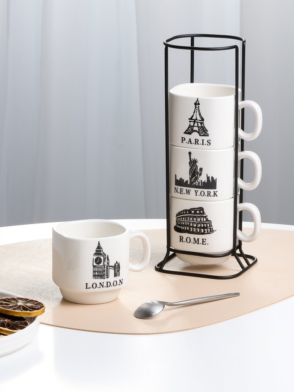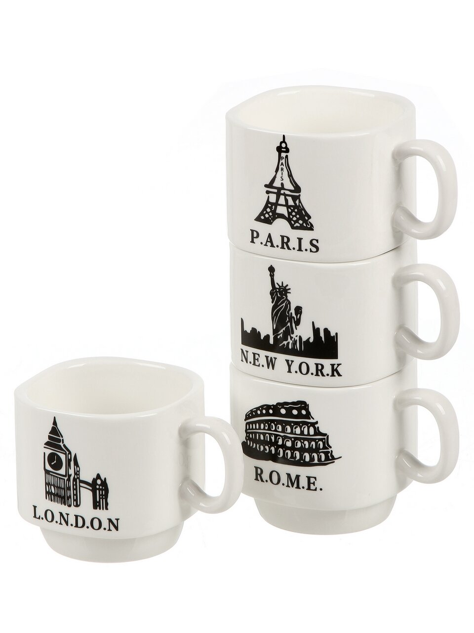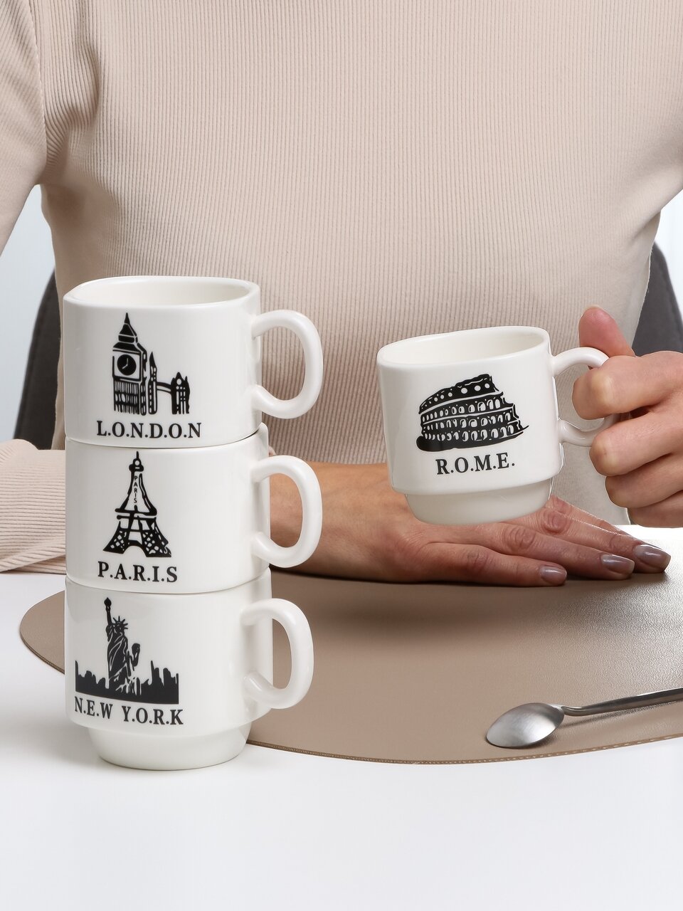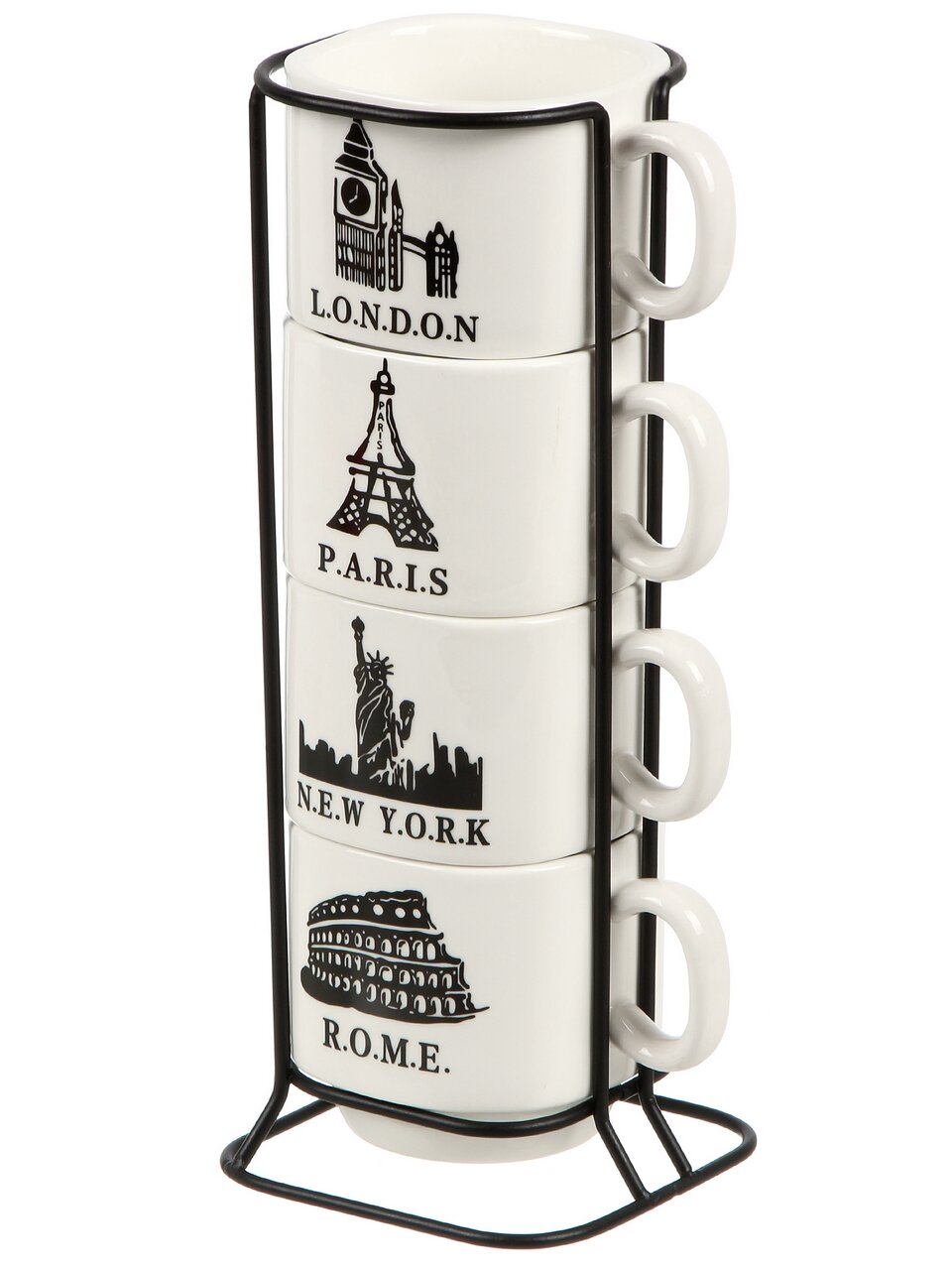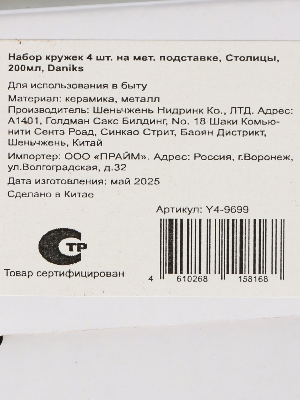 Набор кружек 4 шт на мет. подставке, керамика, Столицы, 200мл, Daniks, Y4-9699