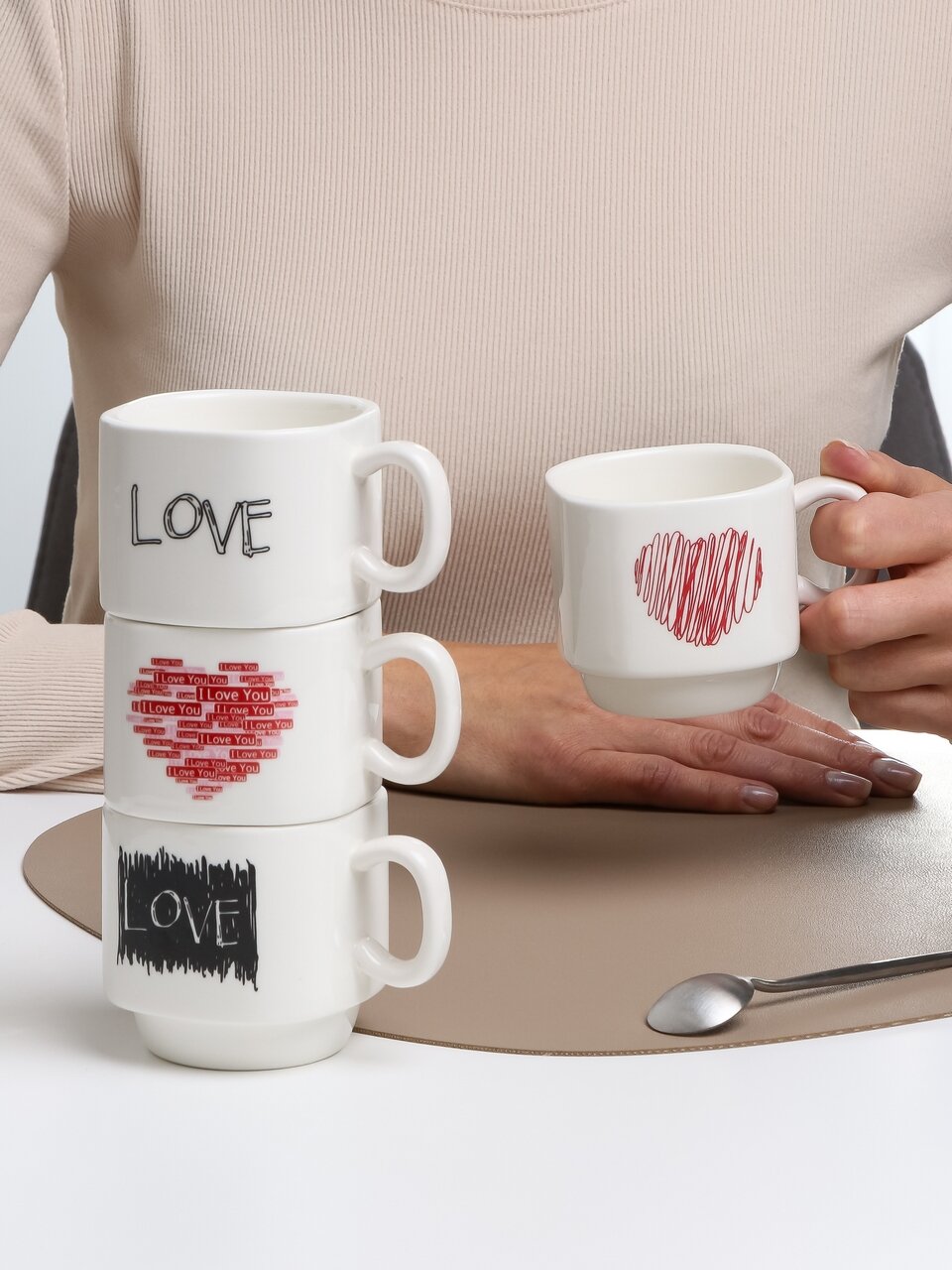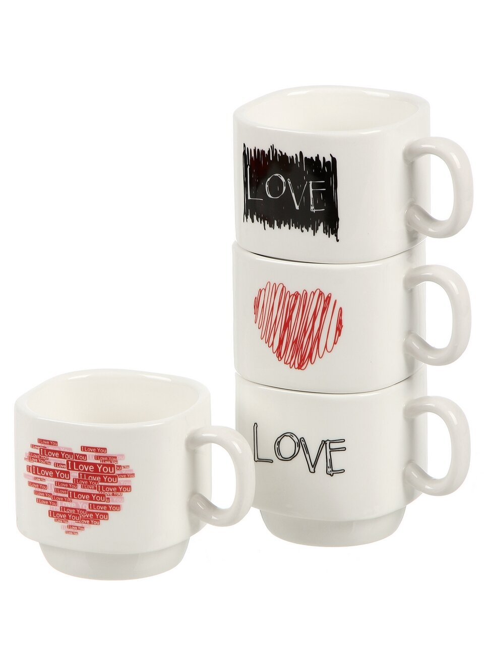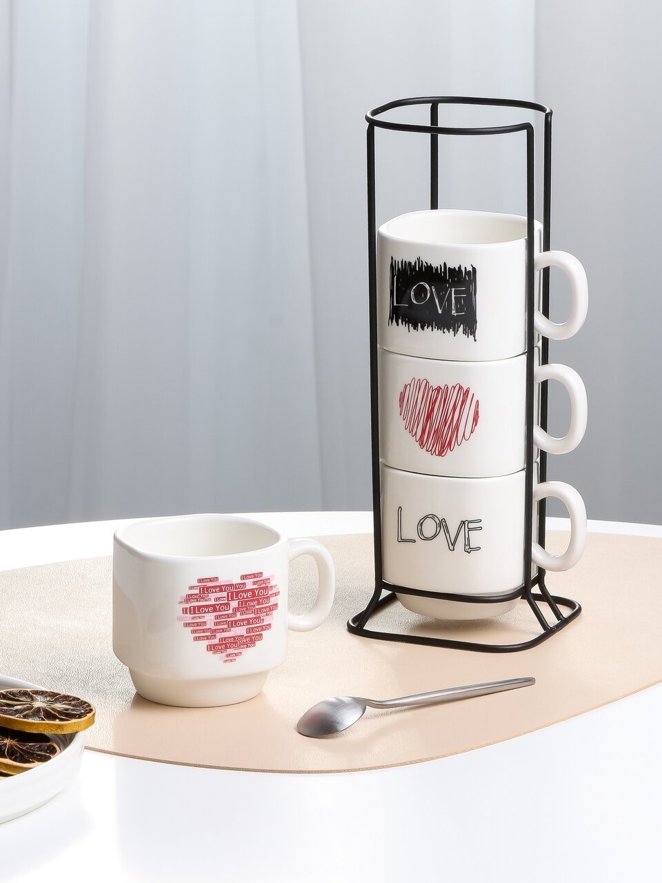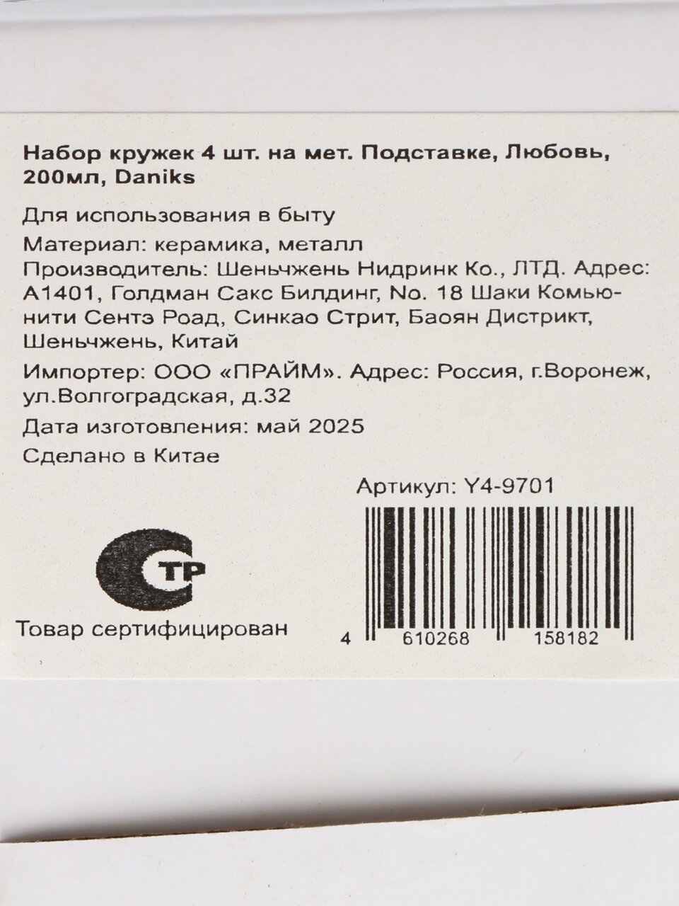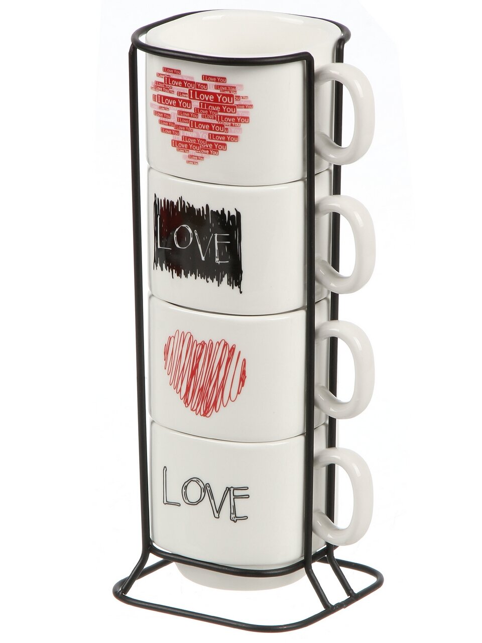 Набор кружек 4 шт. на мет. Подставке, керамика, Любовь, 200мл, Daniks, Y4-9701