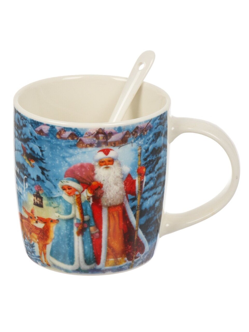 Керамическая кружка 350 мл с ложкой и новогодним дизайном: идеальный подарок 2025 года в стильной упаковке для уютных чаепитий и праздников