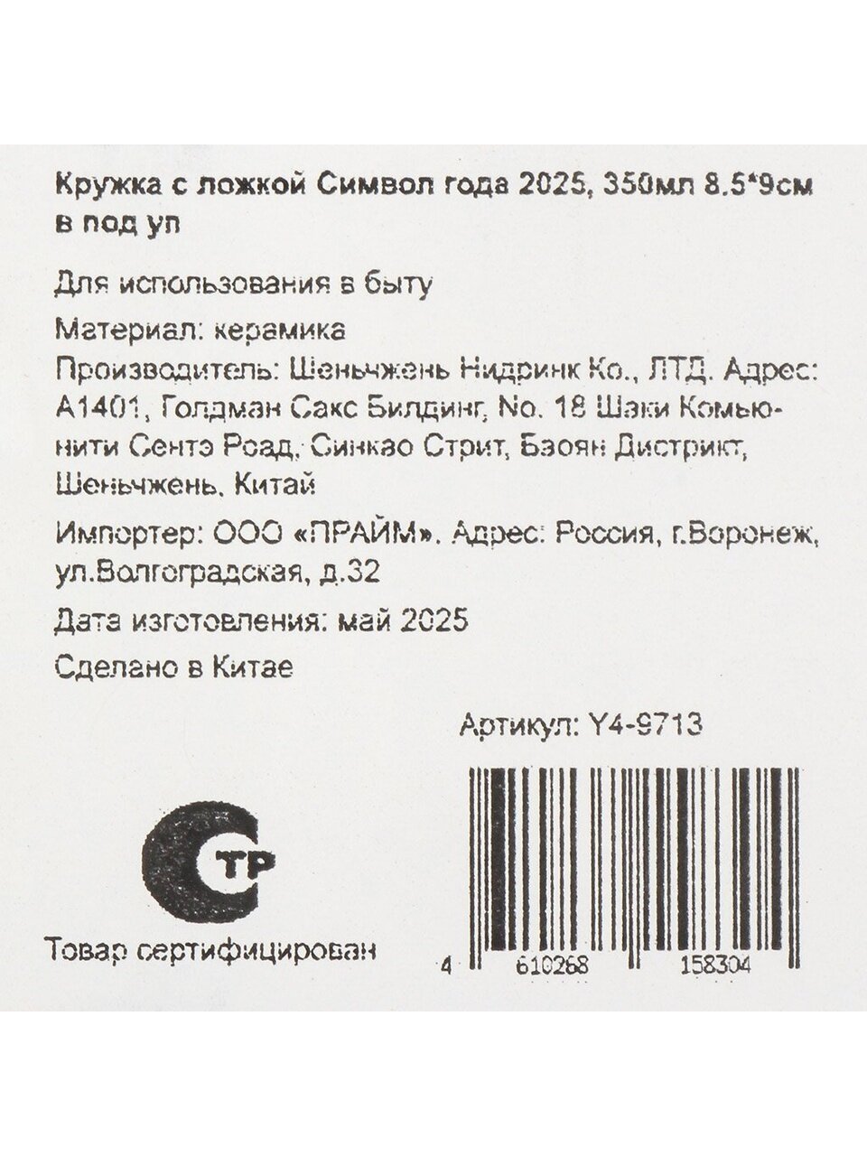 Вы можете приобрести «Кружка керамика, 350 мл, Символ года 2025, с ложкой, 8.5х9 см, в подарочной упаковке, Y4-9713» и другие товары в нашем интернет-магазине в Санкт-Петербургe по низким ценам и с бесплатным самовывозом.