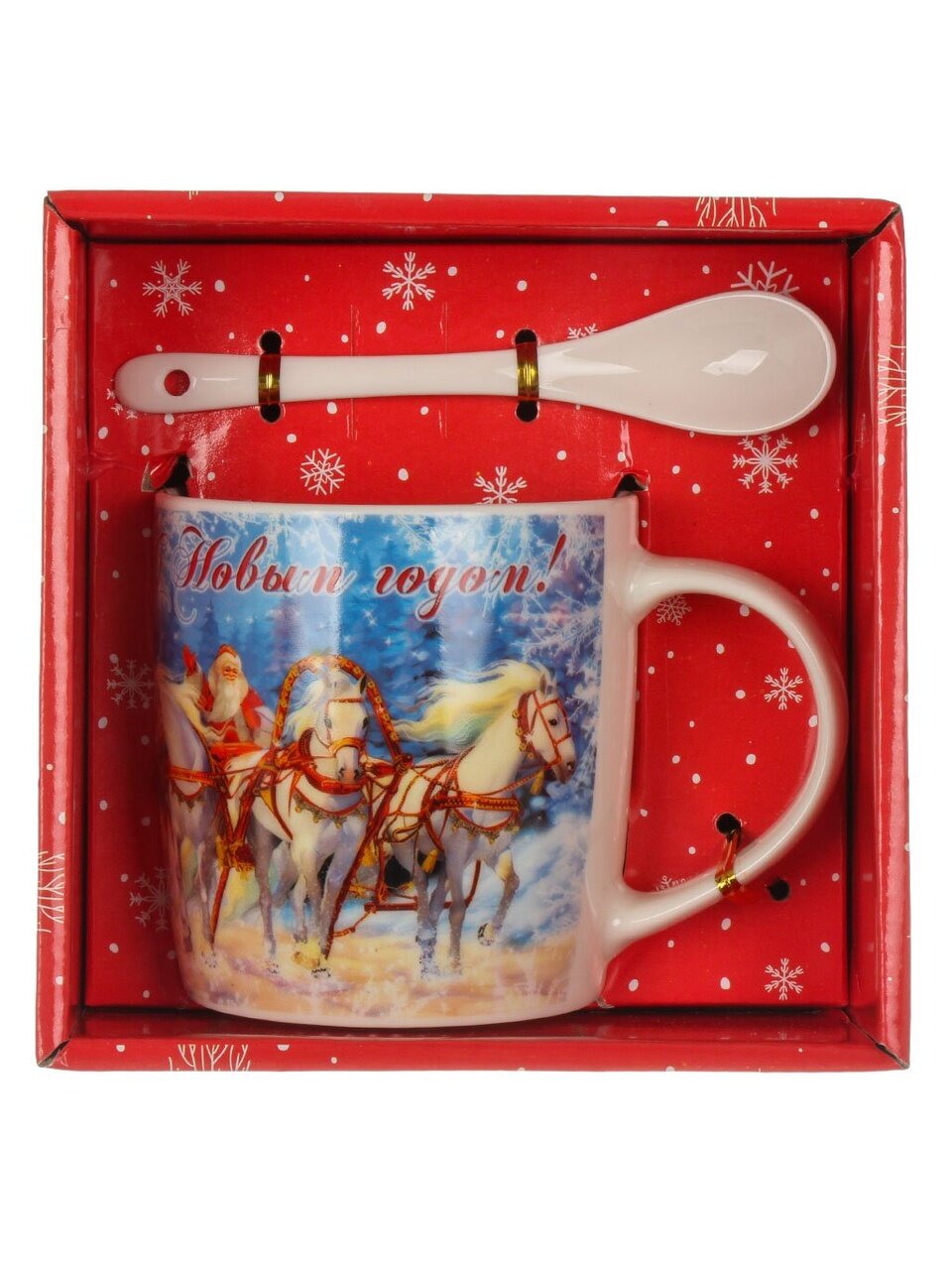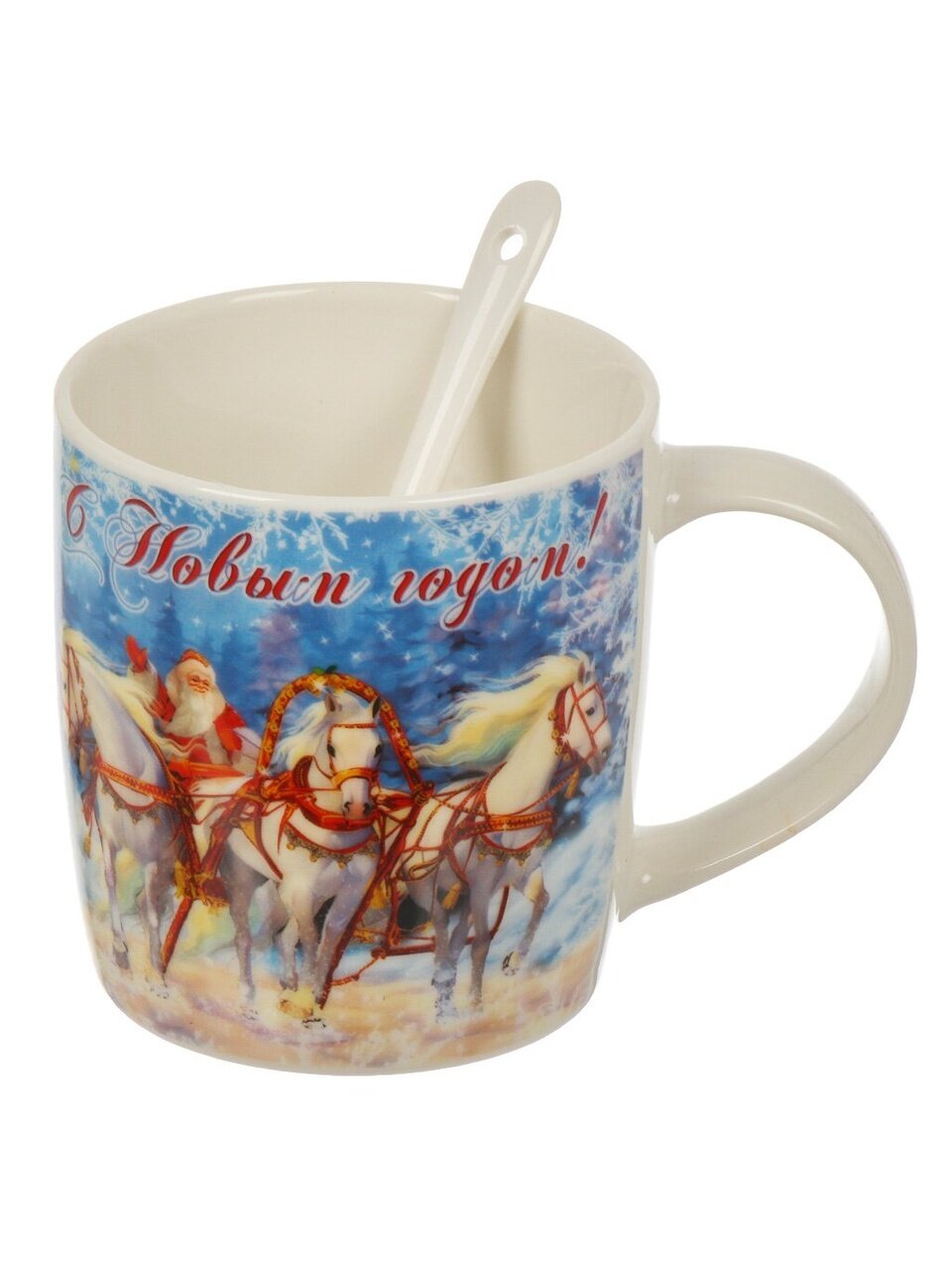 Керамическая кружка 350 мл с ложкой и рисунком «Дед Мороз и лошади» — это не просто посуда, а атмосферный аксессуар для зимних праздников и уютных вечеров. Благодаря универсальному объему и эргономичной форме (8,5х9 см), кружка удобно лежит в руке, подходит для горячих напитков, чая, кофе или какао. Керамика равномерно сохраняет температуру, а отсутствие эмалированного покрытия делает ее безопасной для ежедневного использования.