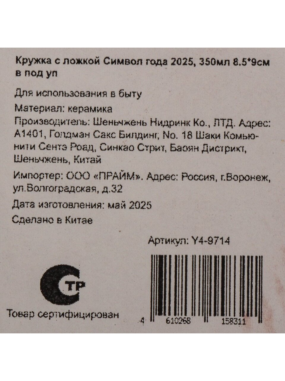 Вы можете приобрести «Кружка керамика, 350 мл, Символ года 2025, с ложкой, 8.5х9 см, в подарочной упаковке, Y4-9714» и другие товары в нашем интернет-магазине в Воронеже по низким ценам и с бесплатным самовывозом.