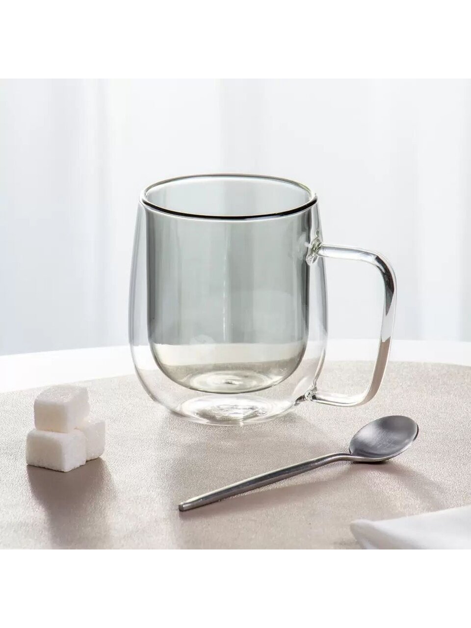 Кружка из стекла 350 мл Duo с двойными стенками Y4-9733: стильный аксессуар для дома и подарка, сохраняет тепло напитка дольше и не обжигает руки.