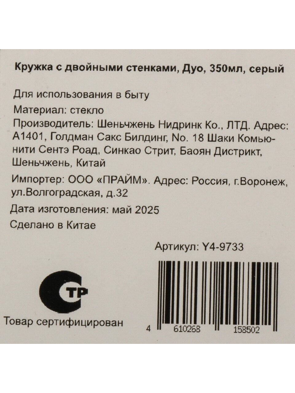 Вы можете приобрести «Кружка стекло, 350 мл, Дуо, двойные стенки, Y4-9733, серая» и другие товары в нашем интернет-магазине в Краснодаре по низким ценам и с бесплатным самовывозом.