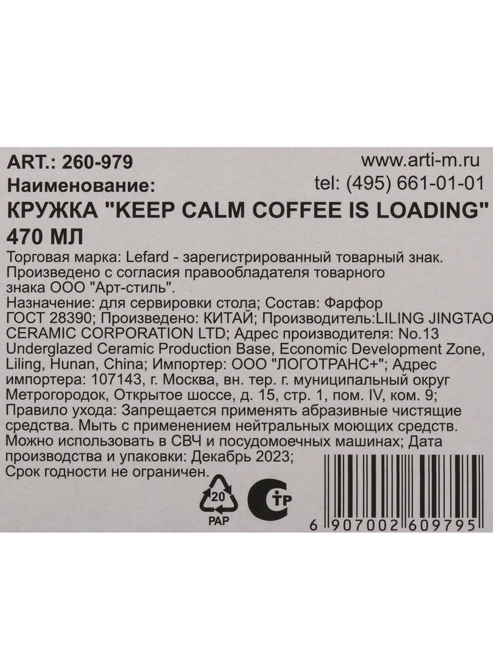 Кружка фарфор 470 мл Lefard Keep Calm Coffee Is Loading: стильный подарок для кофеманов, который сохраняет вкус и тепло напитка. Отличный выбор для дома и офиса.