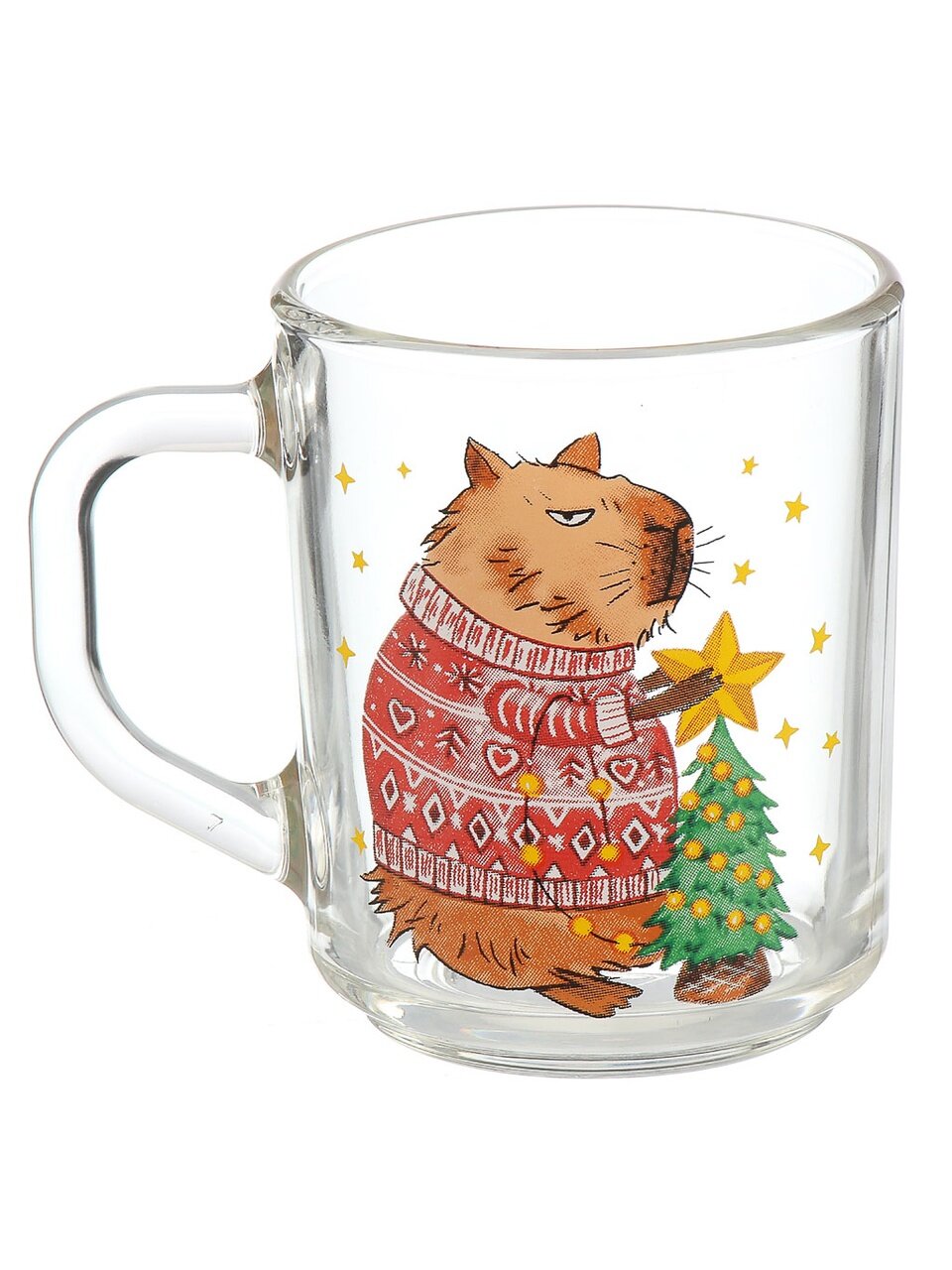 Стеклянная кружка легче, не впитывает запахи, быстро прогревается и подходит для СВЧ. Прозрачные стенки позволяют видеть напиток, а оригинальный новогодний рисунок добавляет настроения.