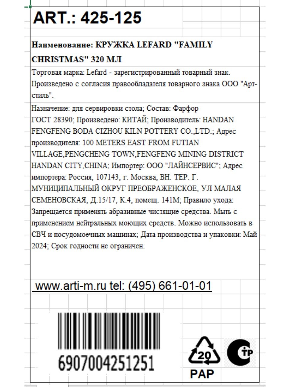 Кружка фарфор, 320 мл, Family Christmas, Lefard, 425-125 - фото 1 от пользователя