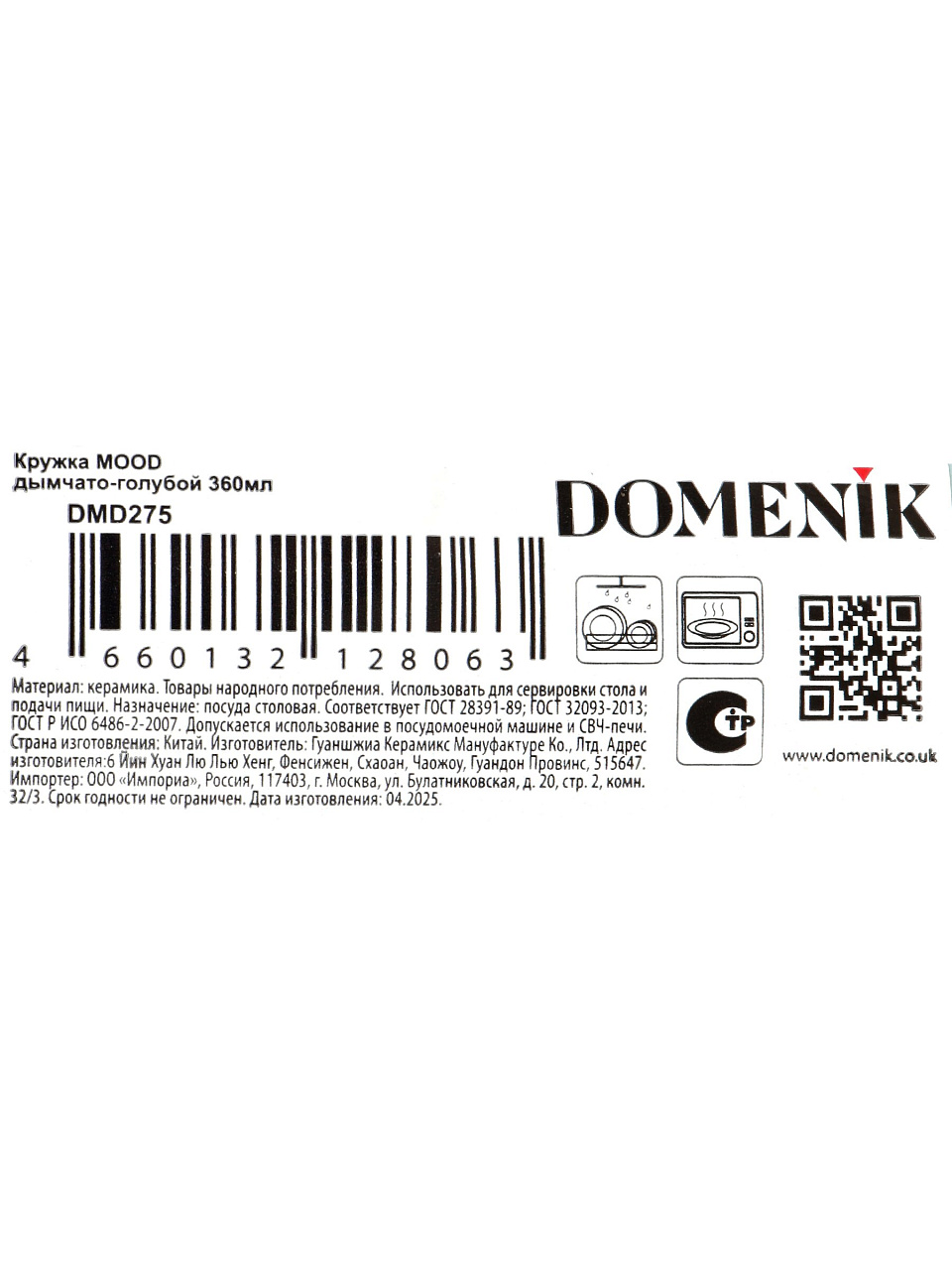 Вы можете приобрести «Кружка керамика, 360 мл, Mood, Domenik, DMD275, дымчато-голубая» и другие товары в нашем интернет-магазине в Армавире по низким ценам и с бесплатным самовывозом.