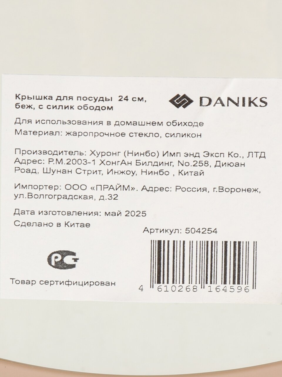 Вы можете приобрести «Крышка для посуды стекло, 24 см, Daniks, беж, с силик ободом» и другие товары в нашем интернет-магазине в Серпухове по низким ценам и с бесплатным самовывозом.