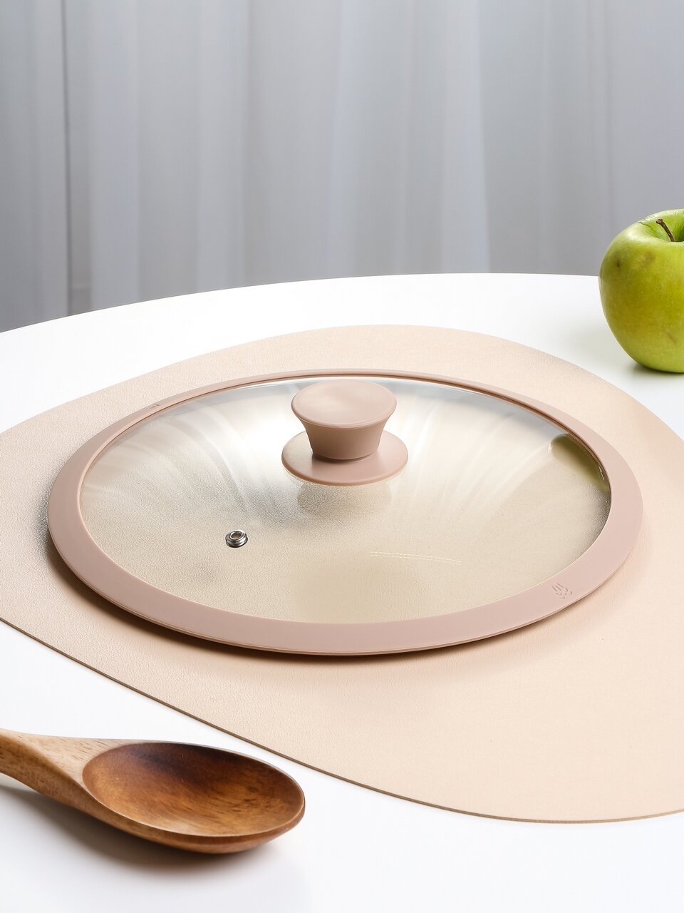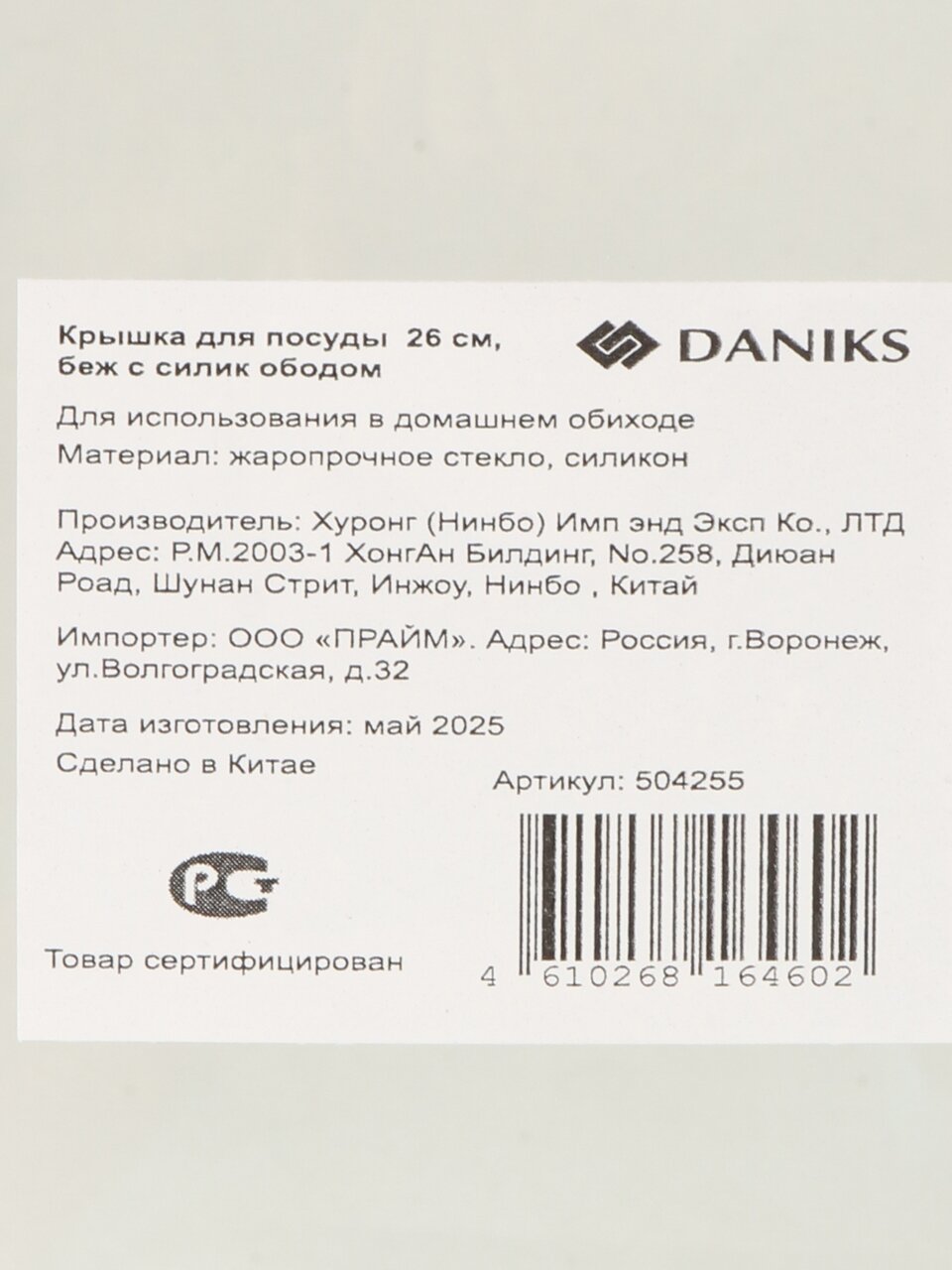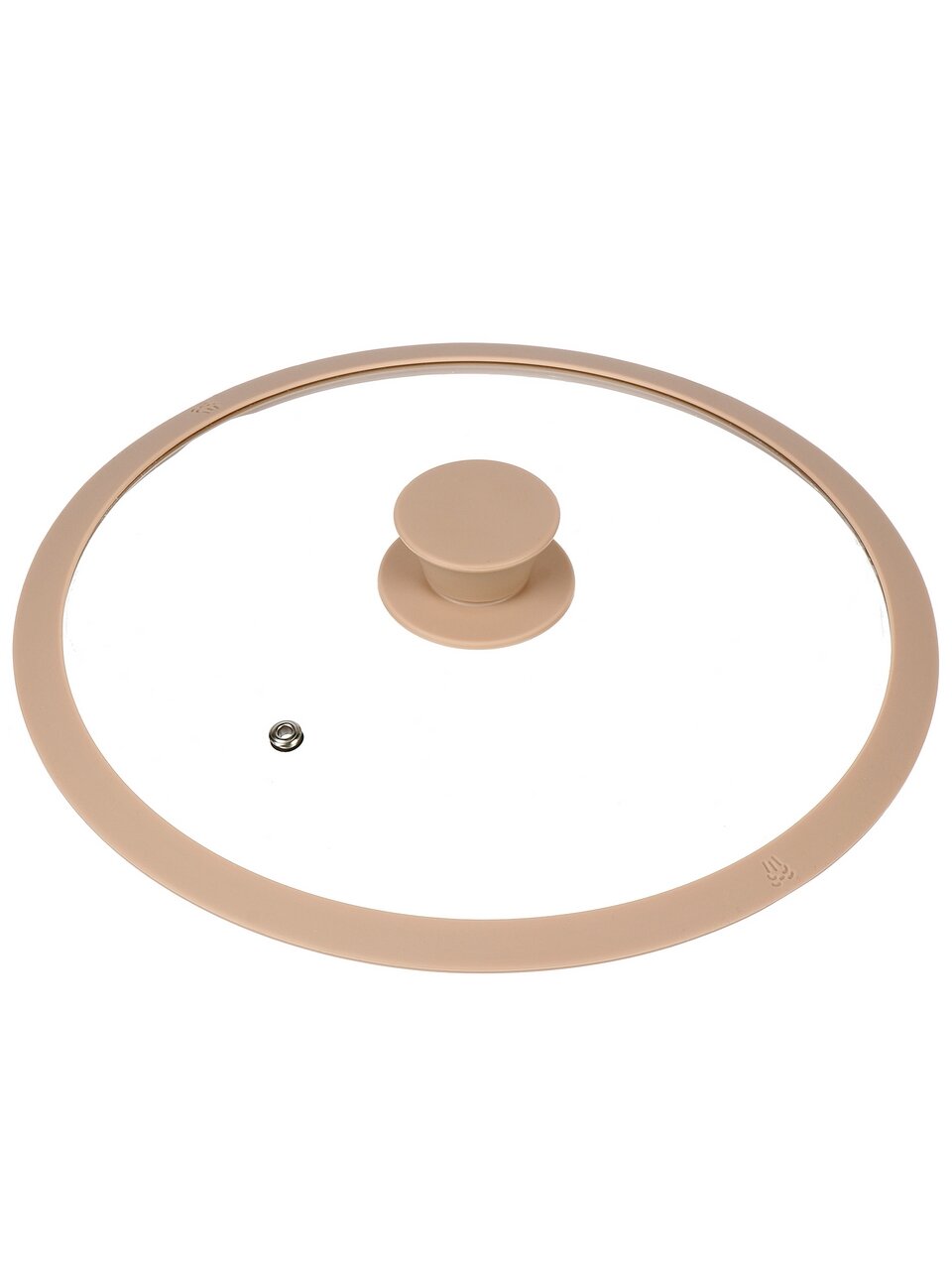 Крышка для посуды Daniks 26 см: безопасное стекло, бежевый силиконовый обод, идеальна для дома и дачи. Защита, стиль и долговечность.