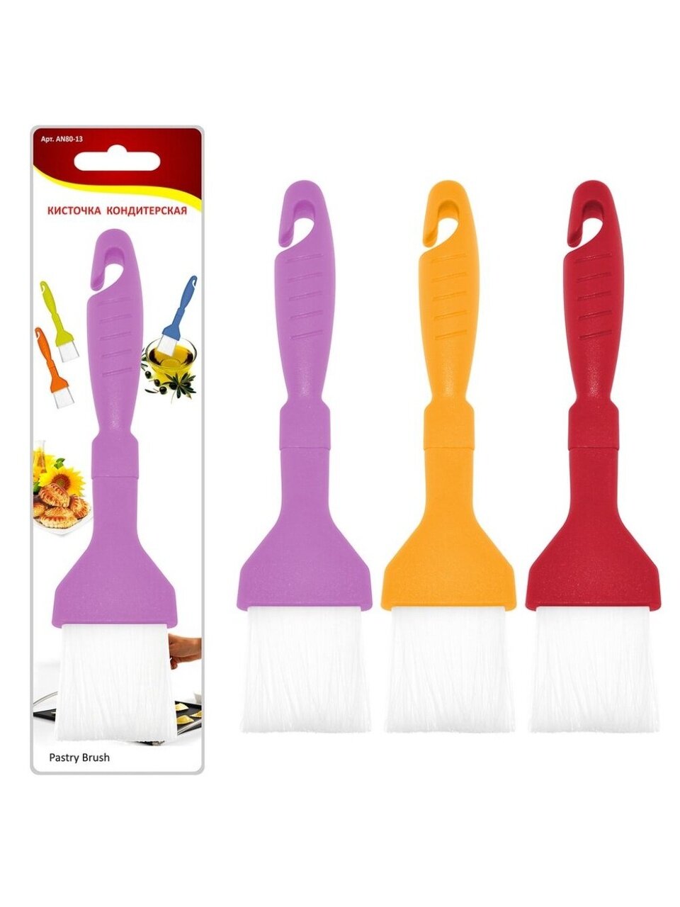 При приготовлении кондитерских изделий и других блюд не обойтись без использования кондитерской кисти. Это приспособление используется для нанесения крема, глазури, удобно для смазывания маслом противня или выпечки перед запеканием в духовке. Щетинки изготовлены из синтетического материала – гигиеничного, безопасного для использования с продуктами питания. Удобная пластмассовая ручка оснащена отверстием для крючка, кисть можно повесить или убрать в шкаф для комфортного хранения. После использования тщательно промывайте кисть с моющими средствами.