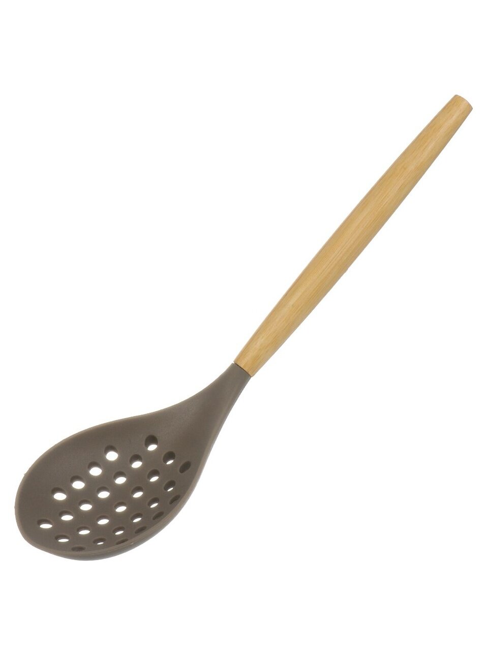 - Коричневый цвет шумовки добавляет ей элегантности и стиля, делая ее подходящей для использования в различных интерьерах кухни.