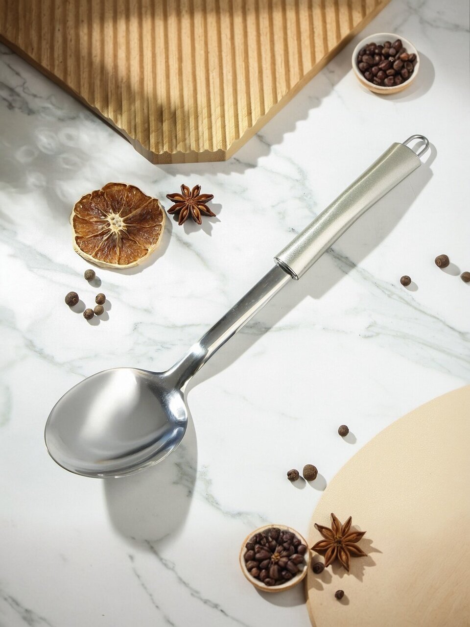 Поварская ложка Daniks Classic из нержавеющей стали — идеальный выбор для современной кухни. Серебристый цвет и подвесная конструкция делают аксессуар стильным и удобным для хранения. Прочная сталь марки 201 обеспечивает долгий срок службы и легкость ухода. Универсальное использование для приготовления любых блюд. Отличное решение для профессионалов и любителей кулинарии.
