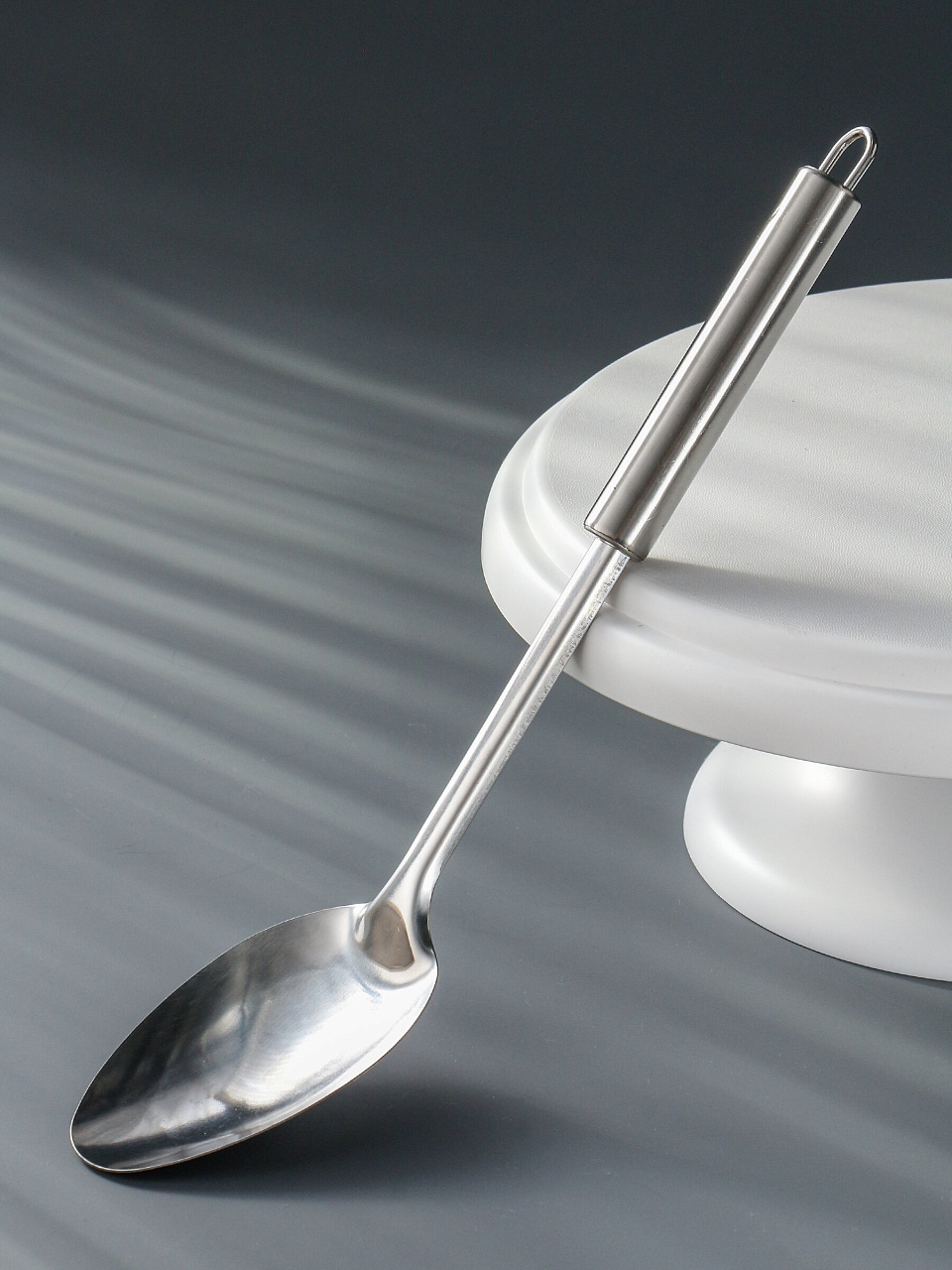 Длина ложки — 30 см, рассчитана на работу с большими кастрюлями и подходит для приготовления на одну или несколько персон.