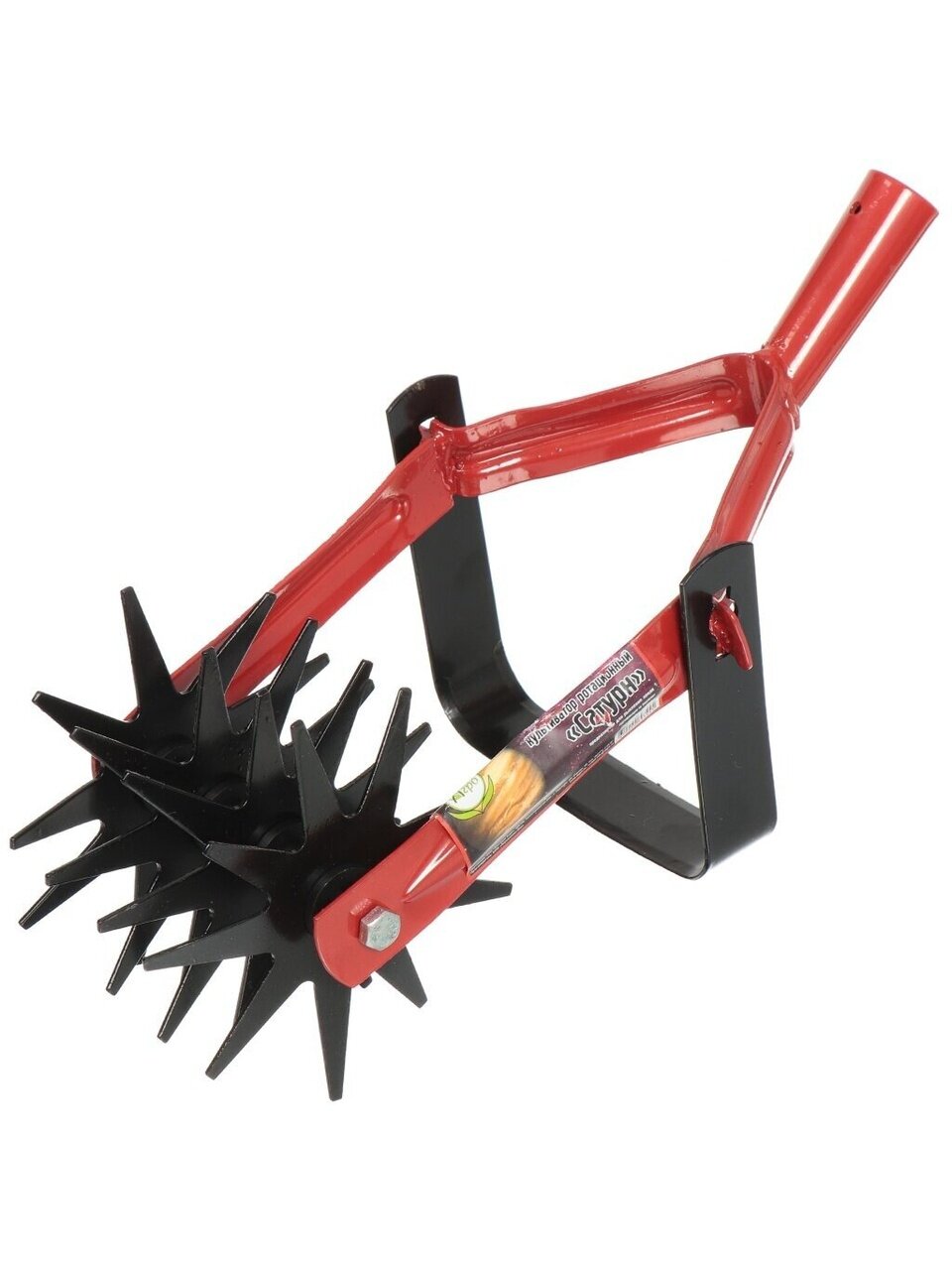 От коррозии металлическую рабочую часть (4 звёздочки) защищает специальное покрытие из порошковой эмали. Усиленная конструкция культиватора позволяет обрабатывать большие площади. Культиватор поступает подготовленный к работе, заточку возможно делать по мере необходимости. Диаметр тулейки 30 мм.
