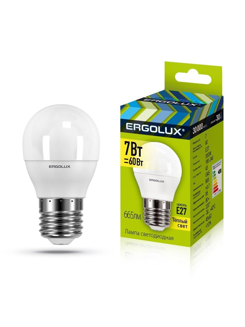 Вы можете приобрести «Лампа светодиодная E27, 7 Вт, 60 Вт, 220 В, шар, 3000 К, теплый белый свет, Ergolux, 12143» и другие товары в нашем интернет-магазине в Клинцах по низким ценам и с бесплатным самовывозом.