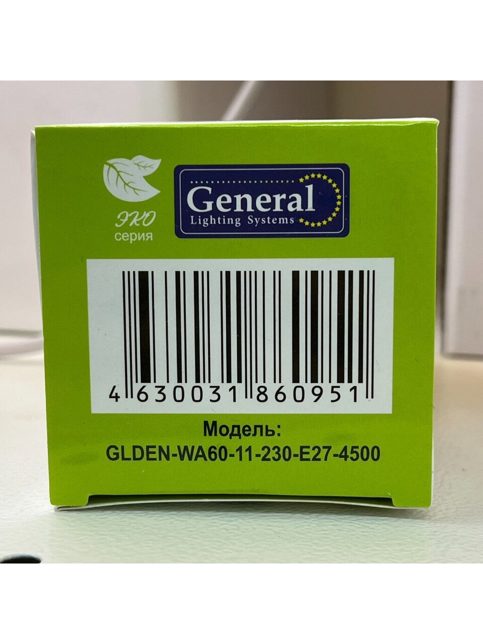 Вы можете приобрести «Лампа светодиодная E27, 11 Вт, 230 В, груша, 4500 К, нейтральный белый свет, General Lighting Systems, GLDEN-WA60, WA60, 636800» и другие товары в нашем интернет-магазине в Смоленске по низким ценам и с бесплатным самовывозом.