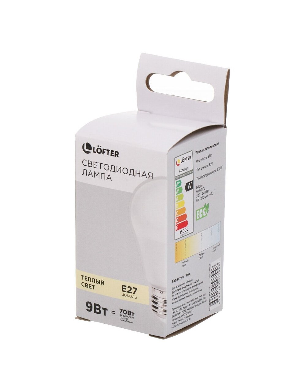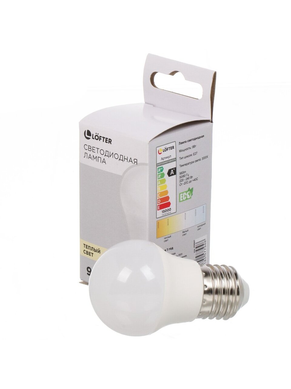 Вы можете приобрести «Лампа светодиодная E27, 9 Вт, 70 Вт, 220 В, шар, 3000 К, теплый белый свет, Lofter» и другие товары в нашем интернет-магазине в Клинцах по низким ценам и с бесплатным самовывозом.
