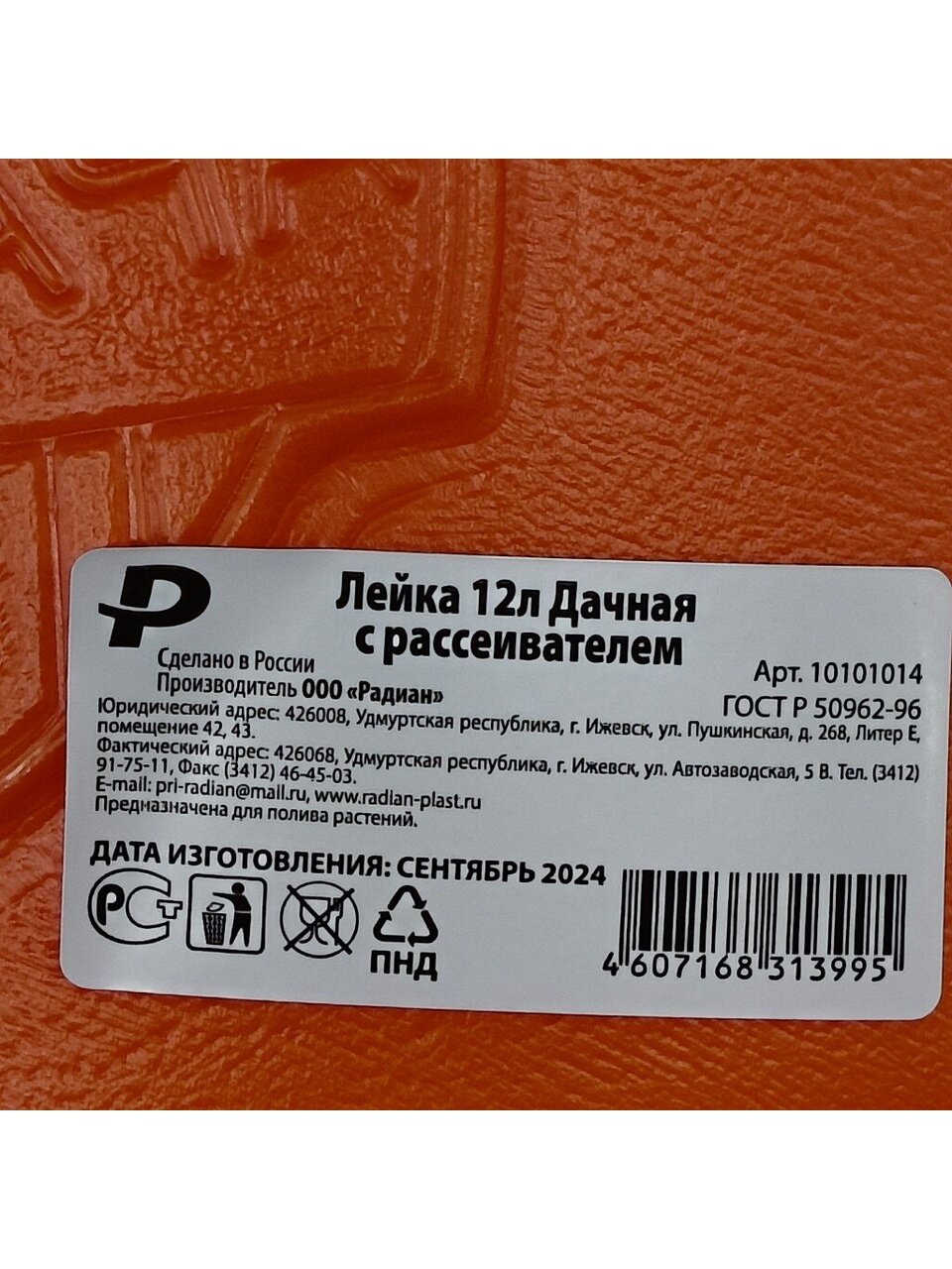 Лейка садовая, пластик, 12 л, с распылением, в ассортименте, Радиан, Дачная — идеальное решение для ухода за садом и огородом. Надежная лейка для полива растений позволит с легкостью поддерживать свежесть и здоровье цветов, овощей и кустарников. Благодаря объему 12 литров, полив становится более эффективным и не требует частого наполнения, что экономит время и силы. Современный пластиковый материал обеспечивает легкость и прочность, делая лейку удобной для ежедневного использования в саду или на даче. Яркие цвета в ассортименте добавят настроения и украсят рабочий процесс.