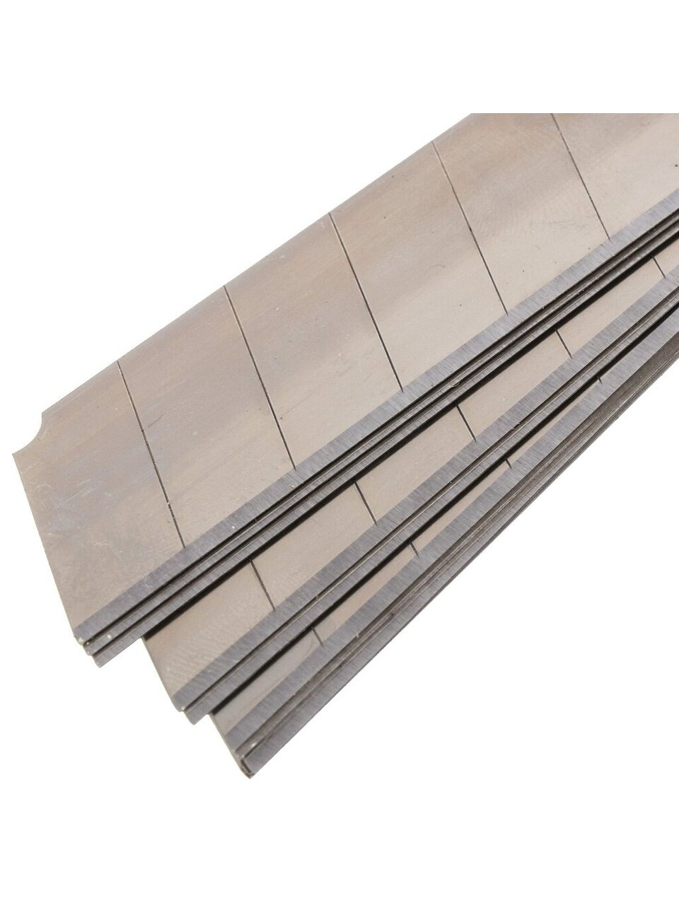 Сегментированное лезвие Bartex UK-82-25 является сменным элементом для пистолетного ножа. Применяется для реза тонких неплотных материалов: линолеума, картона, бумаги, пластика, кожи, резины и т.д. Сегментированная конструкция удобна тем, что в необходимый момент можно обломить затупившийся сегмент лезвия и продолжить работу новой режущей кромкой. Это очень удобно и помогает сэкономить время, не отвлекаясь на заточку ножа. Количество — 10 штук. Толщина лезвия 0.7 мм.