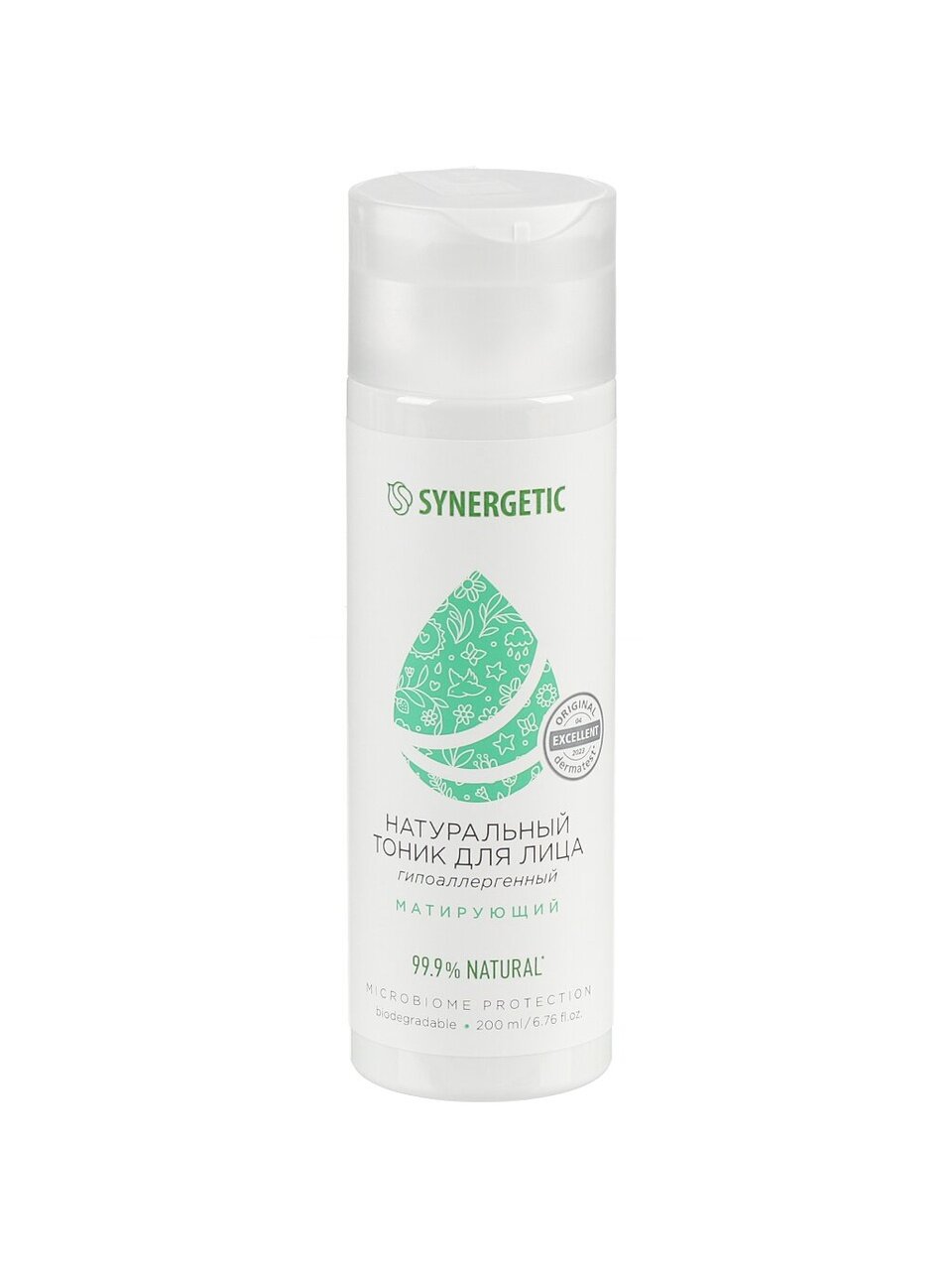 Гипоаллергенный матирующий тоник для лица Synergetic с молочной кислотой бережно очищает кожу, способствуя уменьшению жирного блеска, препятствует образованию акне, черных точек и других несовершенств.