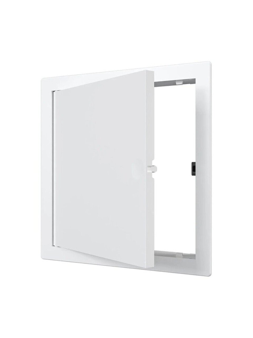 - Нажимной замок фиксирует дверцу, не позволяя ей самопроизвольно открываться, за счет чего люк может устанавливаться не только в стену, но и в потолок.