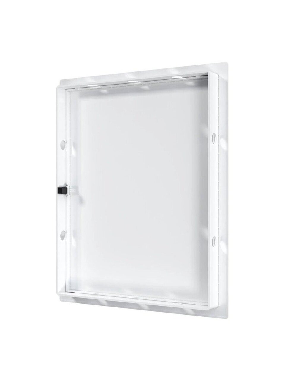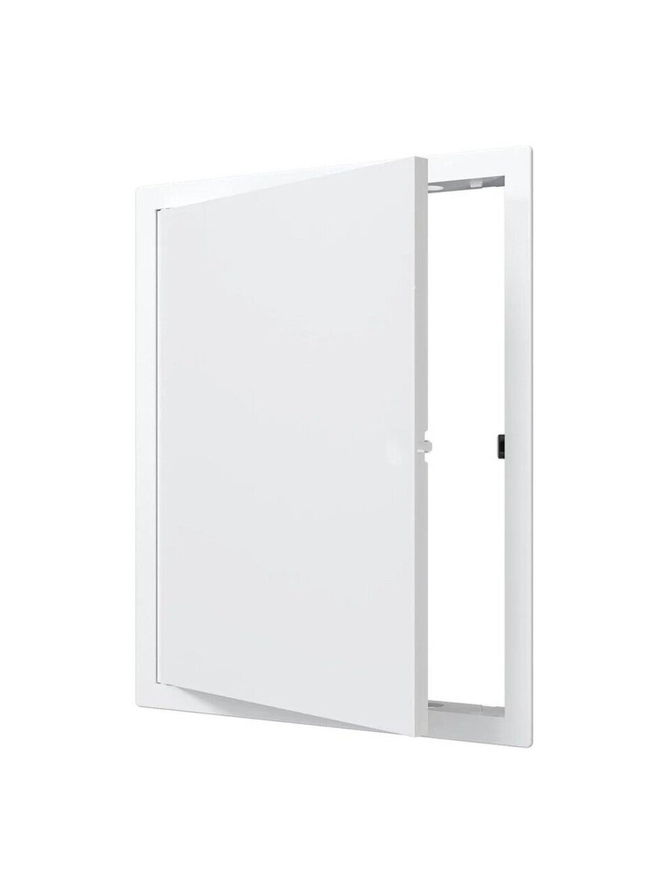 - Нажимной замок фиксирует дверцу, не позволяя ей самопроизвольно открываться, за счет чего люк может устанавливаться не только в стену, но и в потолок.