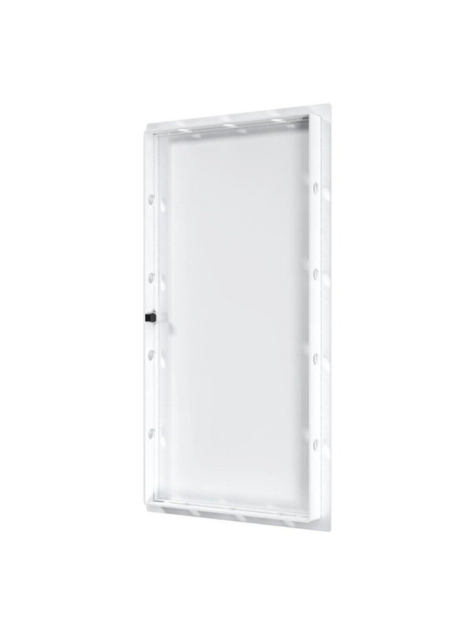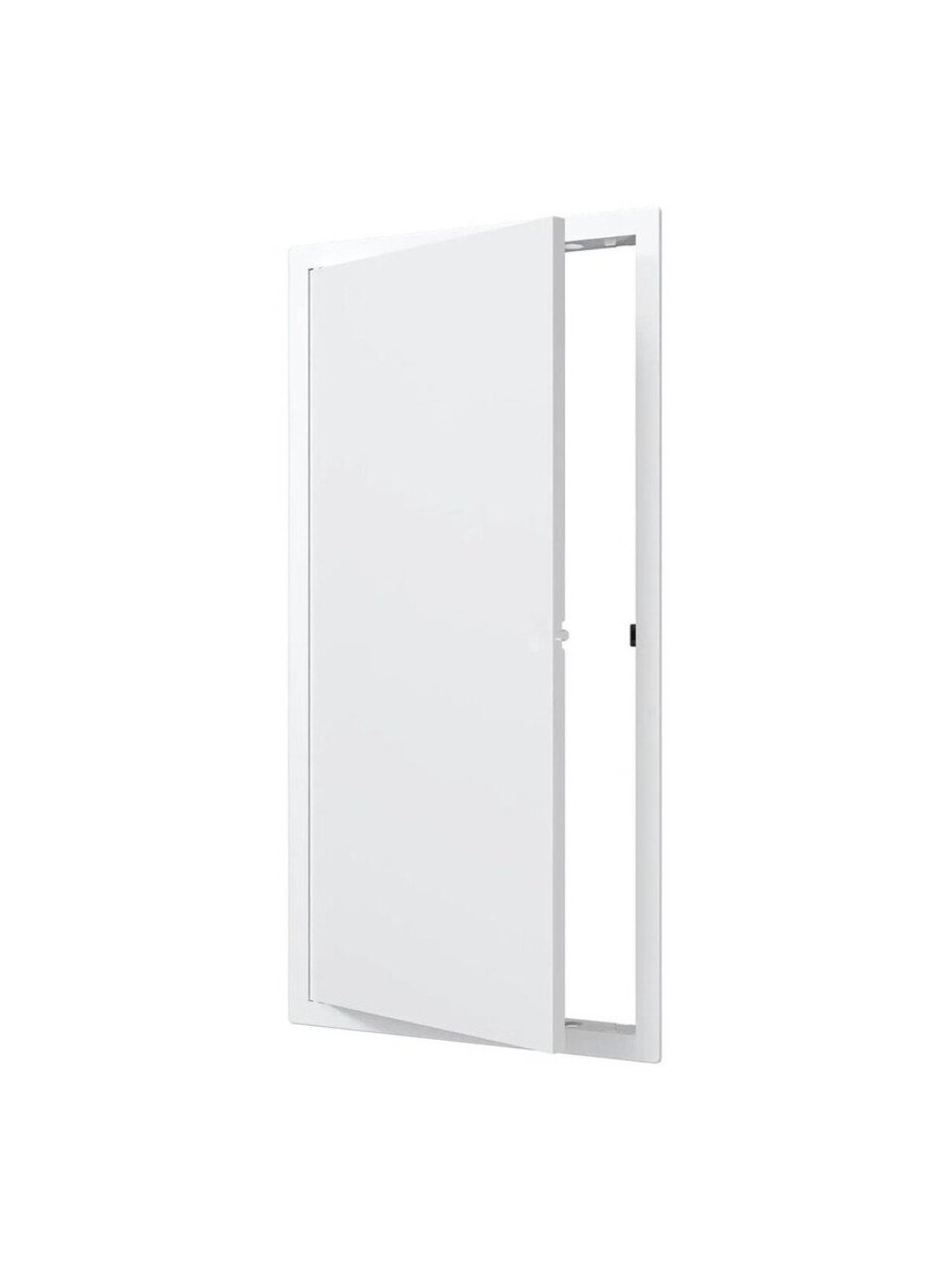 - Нажимной замок фиксирует дверцу, не позволяя ей самопроизвольно открываться, за счет чего люк может устанавливаться не только в стену, но и в потолок.