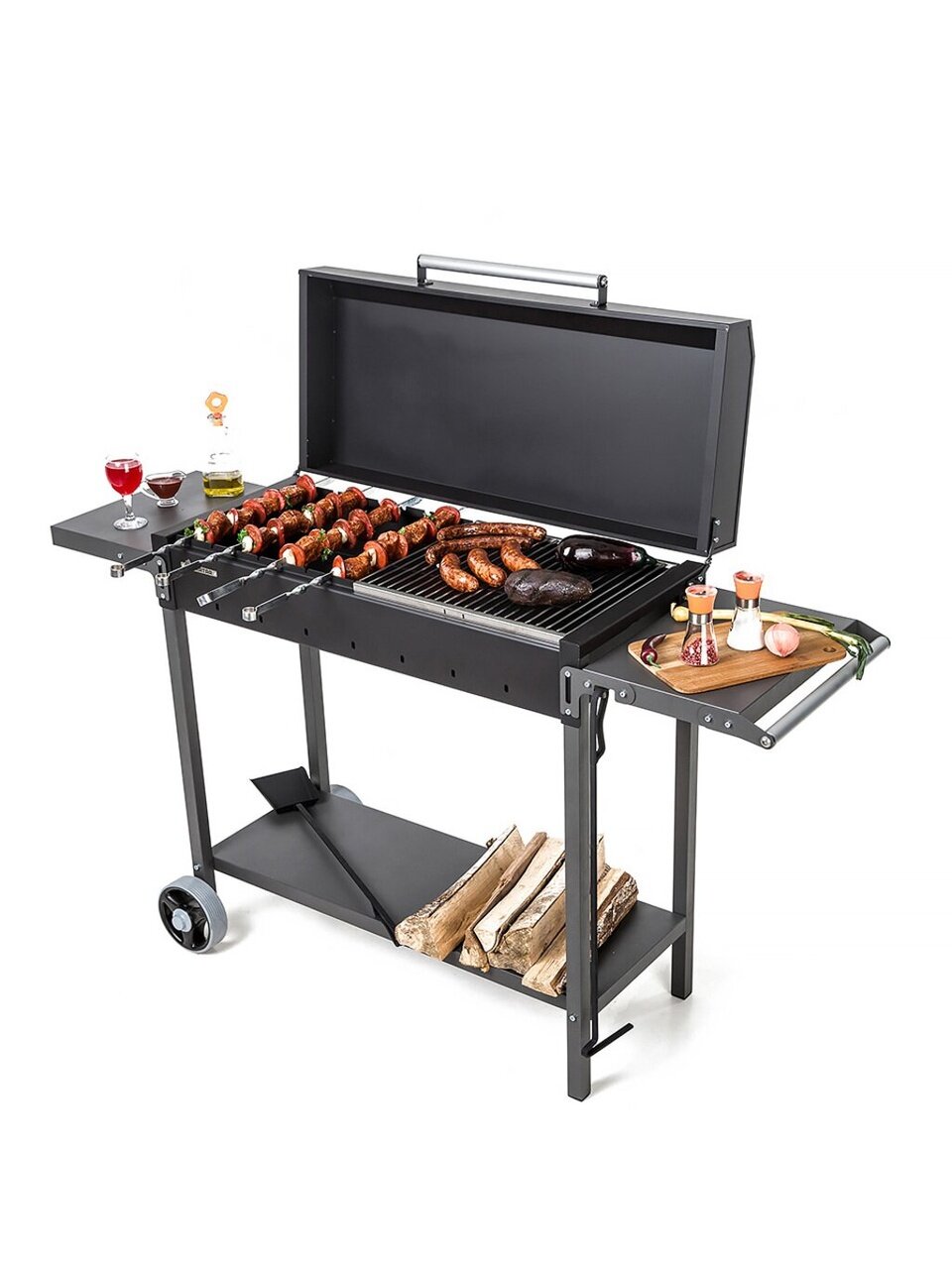- Уникальное сочетание: разборная конструкция, крышка, гриль и складные боковые полки — всё для удобства и быстрого старта готовки.