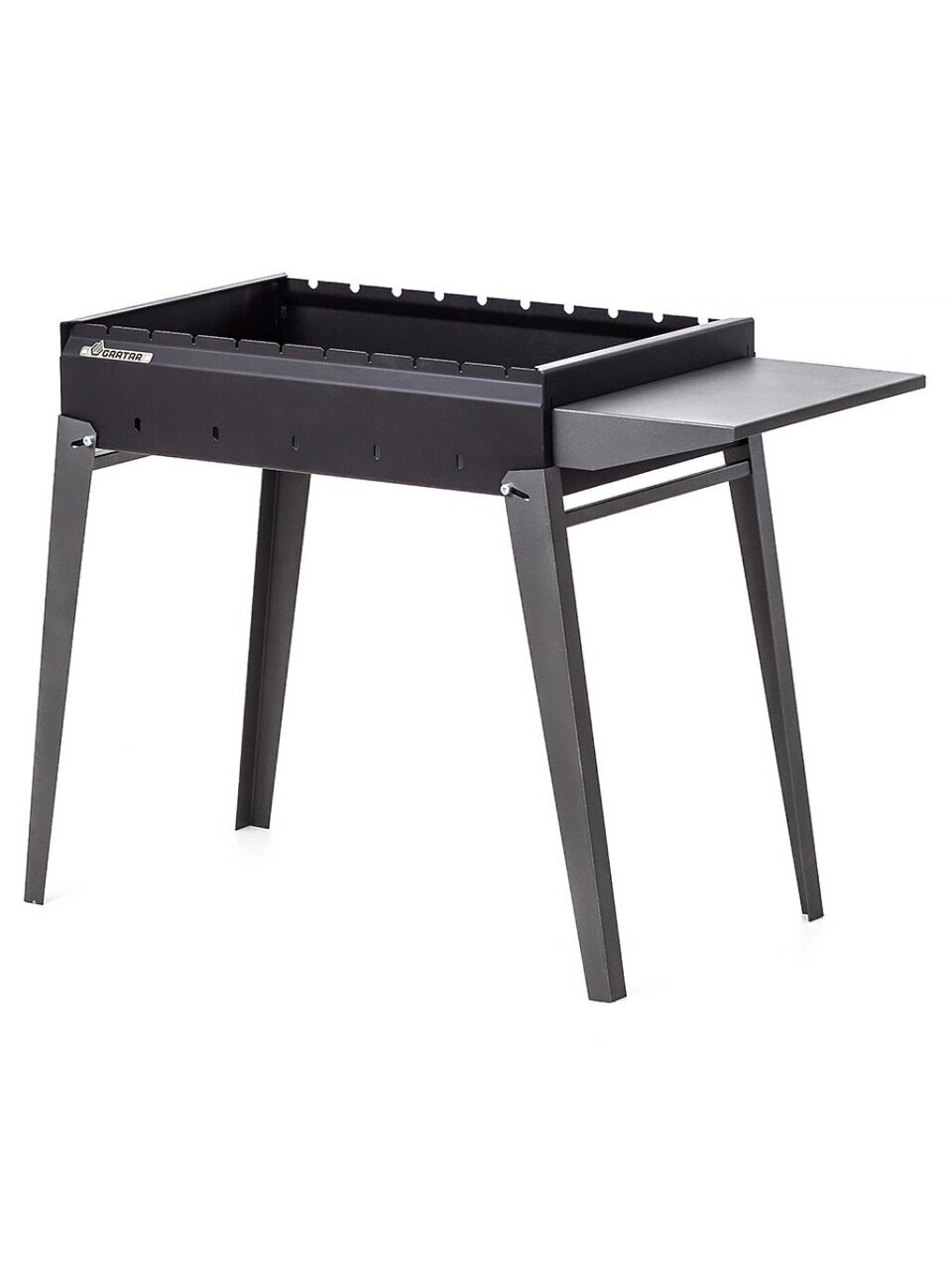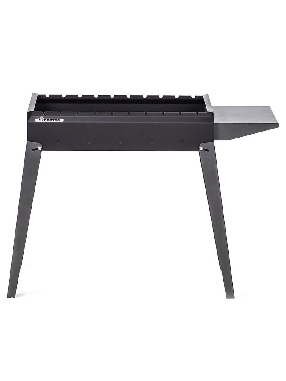 Мангал Gratar 850×590×380×610 мм, разборный, с полкой и грилем — оптимальное решение для дачи и пикника: компактный, прочный, легко собрать и взять с собой.