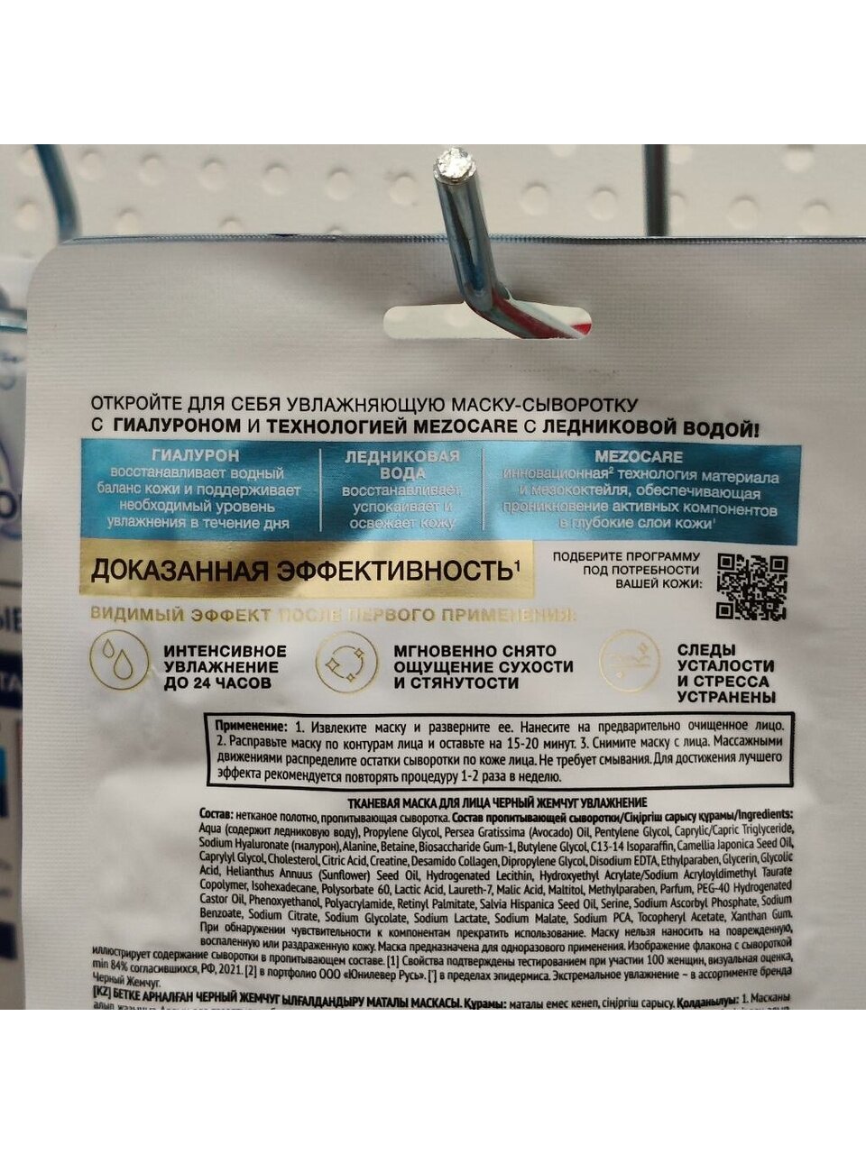 Тканевая маска Черный Жемчуг Увлажнение с технологией MEZOCARE дарит оптимальную порцию влаги и активно ухаживает за лицом. Она отлично подходит для сухой кожи, обладательниц которой часто беспокоит чувство стянутости и шелушение. Тканевую маску можно применять в любом возрасте.