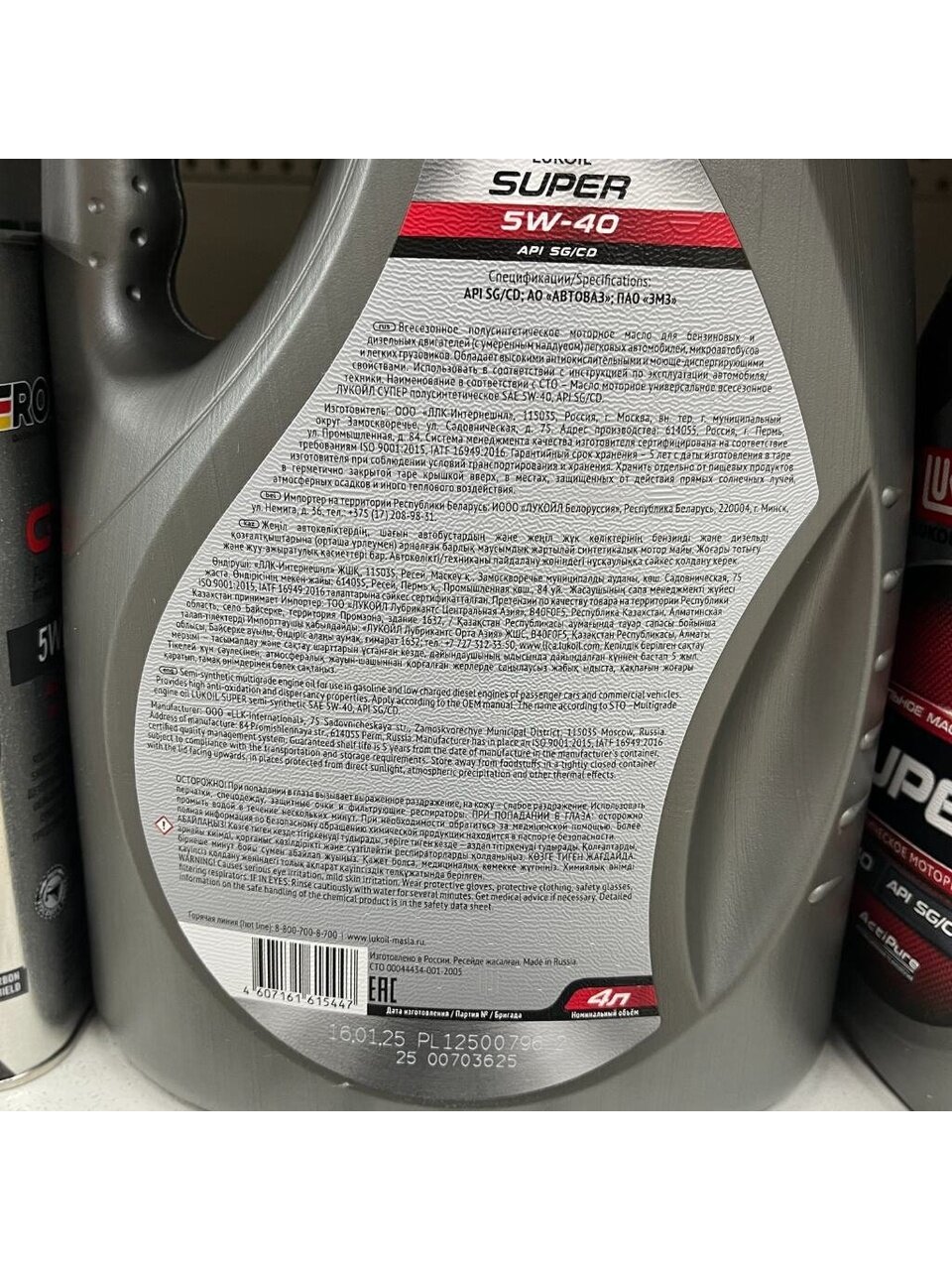 Лукойл Супер 5W40 — серия высококачественных всесезонных моторных масел на полусинтетической основе. Предназначены для эксплуатации атмосферных форсированных бензиновых и дизельных (с умеренным наддувом) двигателей легковых автомобилей, микроавтобусов и легких грузовиков.