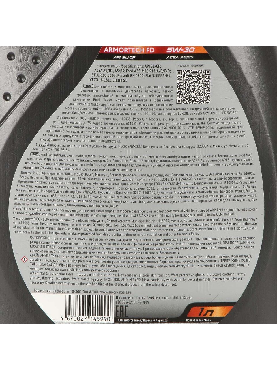 Моторное масло Лукойл Genesis Armortech FD 5W30 1 л — оптимальный выбор для надёжной защиты двигателя, экономии топлива и уверенного старта в любой сезон.