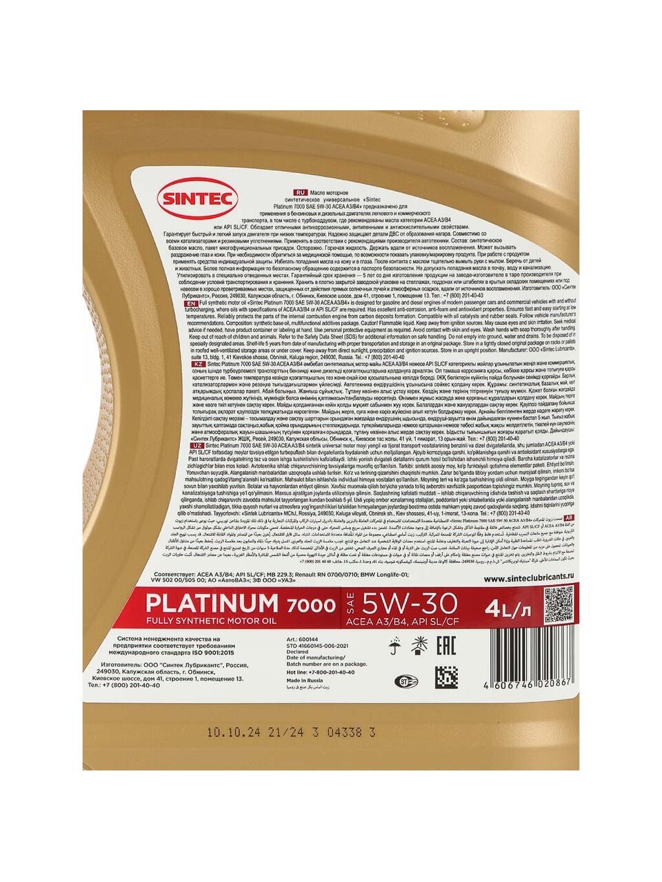 Оформляйте заказ на моторное масло 5W30 Sintec Platinum 7000 по выгодной цене — получите быструю доставку и гарантию подлинности от официального продавца.