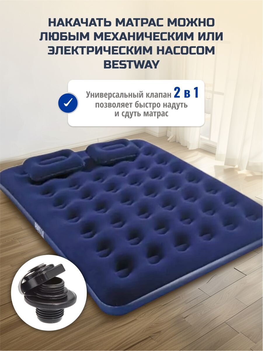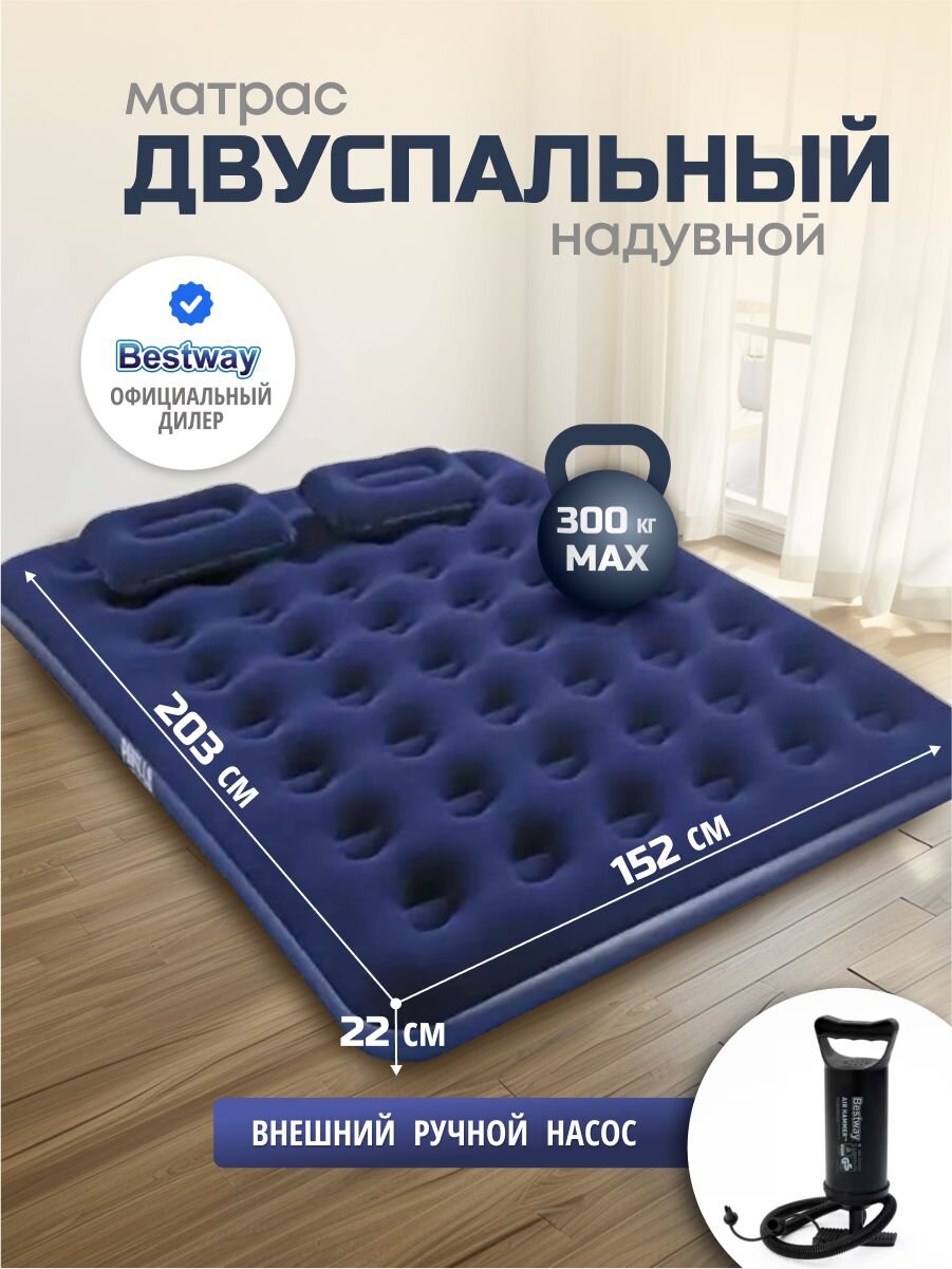 Вы можете приобрести «Матрас надувной Bestway, 203х152х22 см, 67374/005653BW, насос внешний, ручной, флокированный, с подушками, 300 кг» и другие товары в нашем интернет-магазине в Шахтах по низким ценам и с бесплатным самовывозом.