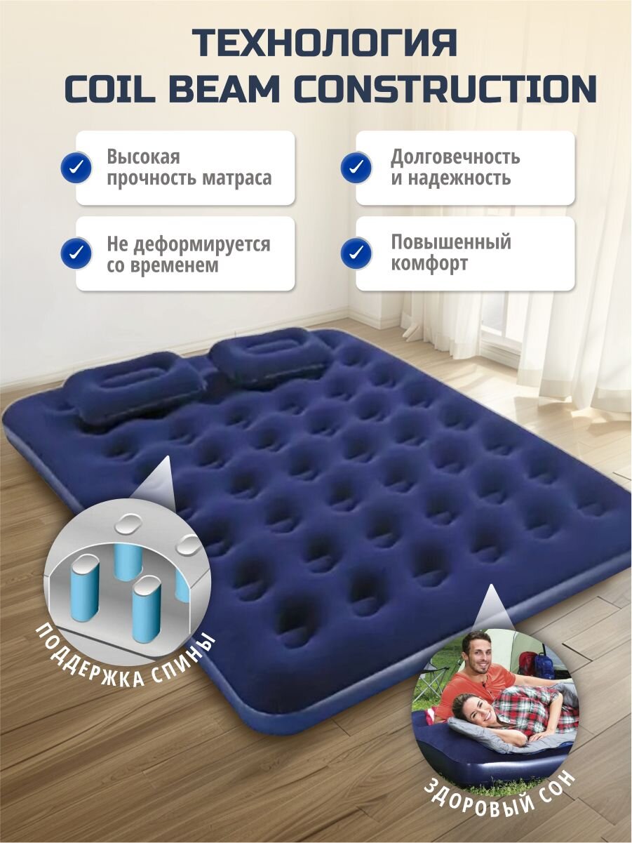 - Благодаря быстрому надуванию насосом матрас готов к использованию в любое время.