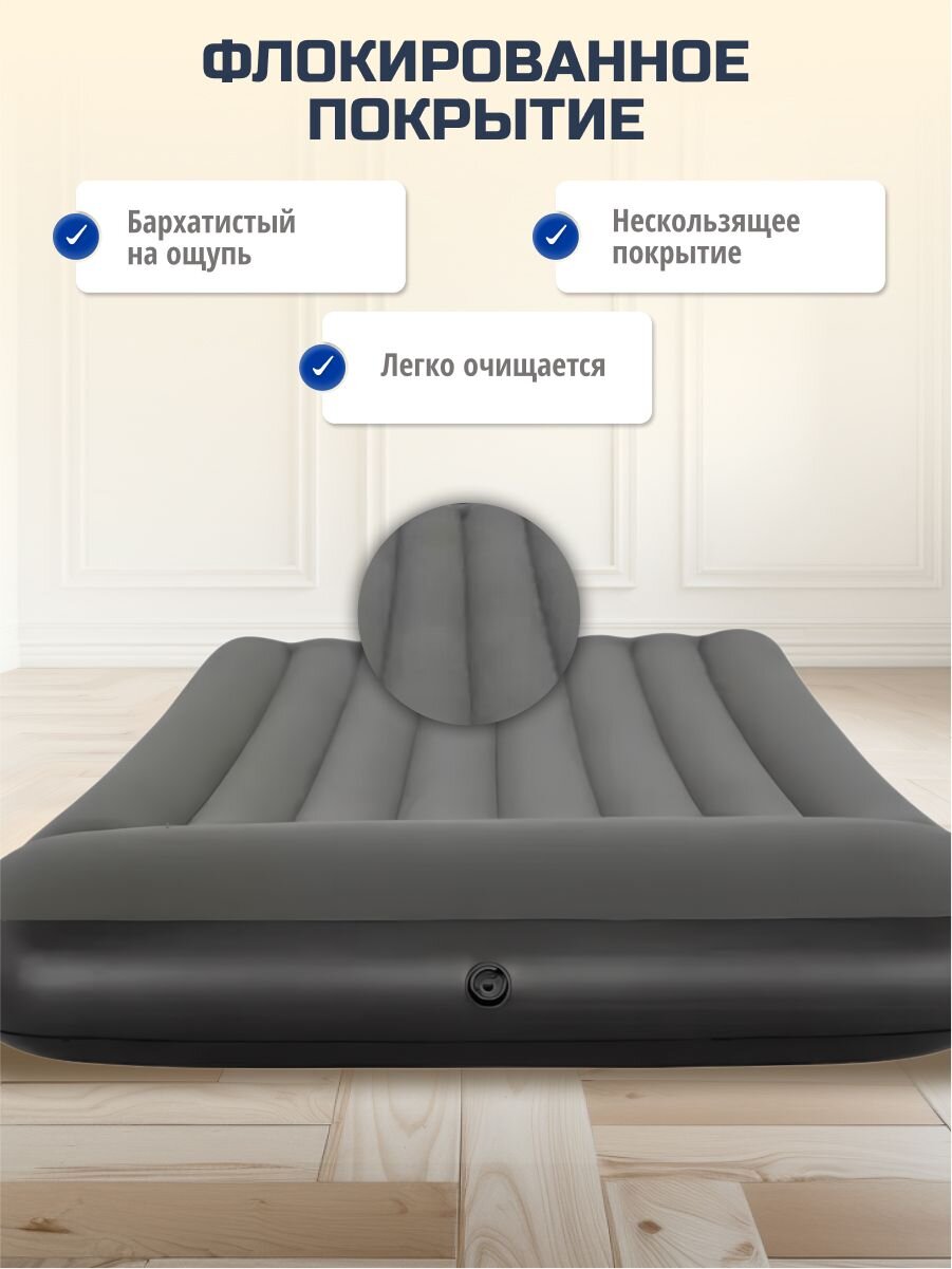 Матрас Bestway, выполненный из прочного флокированного винила, обеспечивает комфортный и здоровый сон в любых условиях. Его уникальная конструкция позволяет ему сохранять форму даже при неравномерном распределении нагрузки. Этот матрас легко надувать и сдувать, что делает его прекрасным выбором для путешествий или отдыха на природе. Кроме того, он может служить дополнительным спальным местом в квартире или доме. Если пространство ограничено, надувные матрасы становятся отличным решением для размещения гостей. Всё, что нужно сделать, - это надуть матрас и разместить его в свободной комнате.Производителем не предусмотрена возможность использования матраса для плавания, подходит для сна и отдыха.