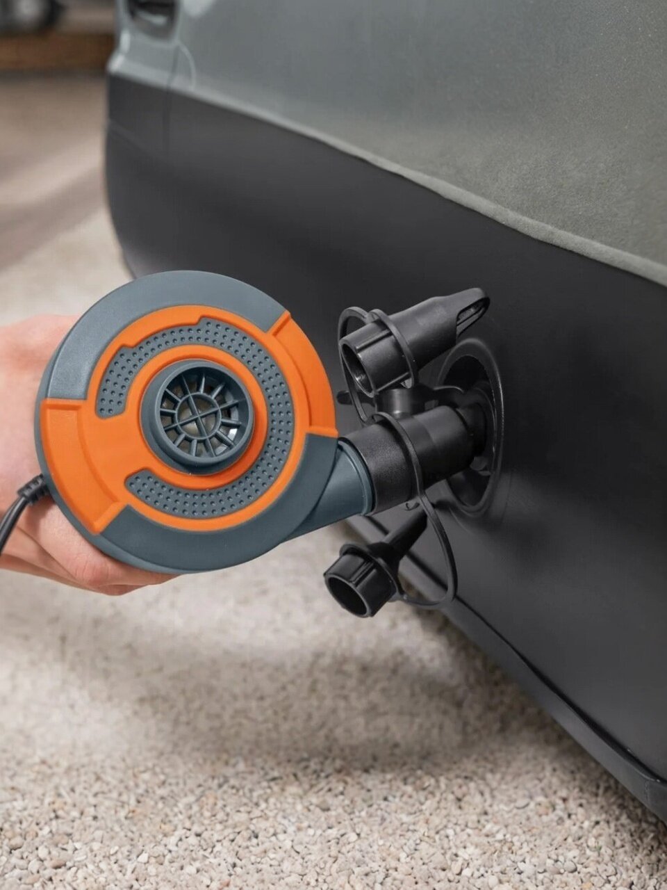 - Без насоса (матрас оснащен универсальным клапаном 2 в 1, накачать его возможно любым механическим или электрическим насосом).