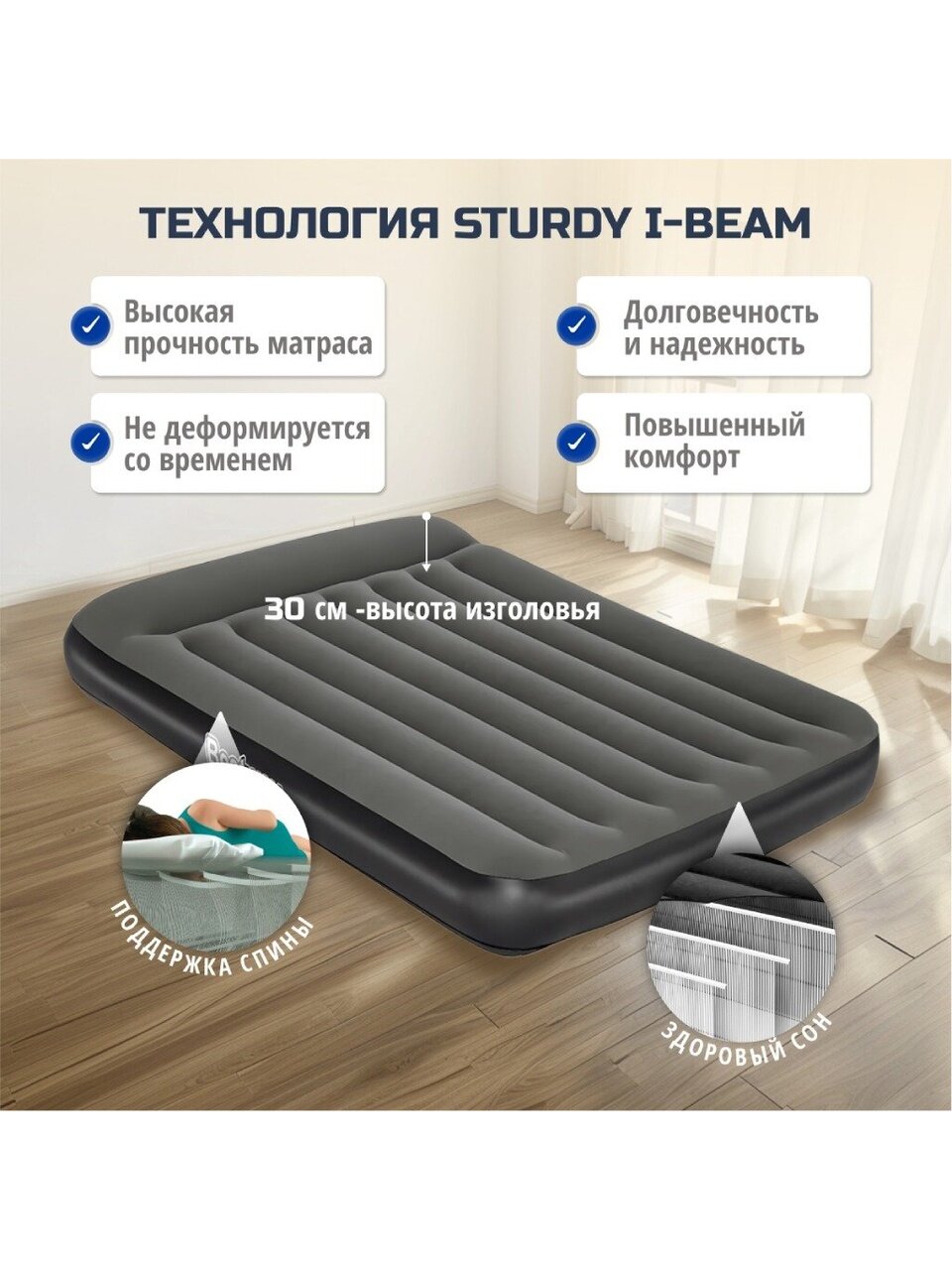 Компания Bestway использует вместо стандартных ПВХ-перегородок множество прочных волокон, что помогает избежать их растяжения и деформации при эксплуатации. Это позволяет матрасу сохранять свою форму, не проминаясь и не продавливаясь, обеспечивая комфортный и здоровый сон.